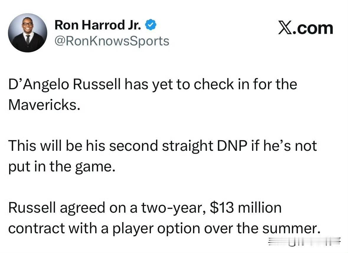没后卫也不用你!!!拉塞尔连续两场被基德DNP! 拉塞尔已经连续两场比赛被球队放弃了,主教练基德一点机会没有给他,全场坐穿冷板凳,不知道水拉自己有何感想。 独行侠连续的两场背靠背,都是洛杉矶还好不用长途奔波,湖人和快船,一胜一负,也能接受,不过独行侠这么缺后卫,拉塞尔还是被DNP了,没得说了,摆明就是不用你,拉塞尔已经在独行侠混不下去了。 今年夏天,独行侠为了选择一名可首发可替补的后卫,最终选择了拉塞尔,没想到他们自己打自己脸了,2年1300万,明年夏天拉塞尔还有球员选项,这么下去球员选项肯定会执行的吧。 目前基德已经确定就是弗拉格打控球前锋,他的篮子也不怎么准,就奔着字母哥去了啊,但是弗拉格还得练,助攻还需要提升,加油! 拉塞尔 拉塞尔困境 独行侠 达拉斯独行侠