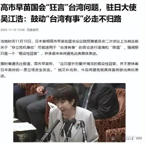 【高市再不道歉后果可能无法挽回】日本首相高市早苗涉台错误言论,引发日本国内强烈批评 这场舆论风暴的导火索,是她在外交场合突破底线的涉台谬论,而真正让日本各界无法容忍的,是她事后拒不认错的强硬姿态。 11月26日的国会党首辩论上,高市早苗迎来就任首相后的首次“大考”,却被在野党集体“围剿”。最大在野党立宪民主党党首野田佳彦直接开炮,指责她的言论未经政府与自民党协调,完全是武断之举。 野田佳彦点破核心矛盾:美国在台湾问题上都坚持模糊策略,日本却偏偏要当“出头鸟”,明确立场细节的做法,实则严重损害国家利益。 面对质询,高市早苗没有半分悔意,反而用“避免预算委员会停摆”为由辩解,声称自己的回答“符合政府统一立场”,全程闪烁其词回避责任。 《朝日新闻》的评论一针见血,称她的辩解是“彻头彻尾的误导”,暴露了其严重缺乏外交考量,这样的表现让民众深感失望。 一位日本外交专家更是直言,高市政府只顾及核心支持者,完全无视民众呼声,这场辩论已然成为日本政坛信任危机的缩影。 党内的不满也在暗中发酵。此前力挺她的部分派系大佬开始保持距离,没人愿意为她的激进言论背书,毕竟没人想陪她承担外交恶化的后果。 日本商界的反对声浪更为直接。中日贸易额占日本外贸总额的近三成,汽车、电子等支柱产业高度依赖中国市场,高市的言论让企业界忧心忡忡。 多个行业协会已私下向自民党提交意见书,警告若中日关系持续恶化,将导致供应链断裂、出口受阻,最终影响数十万就业岗位。 普通民众的愤怒则集中在社交媒体。“我们不要被卷入不必要的冲突”“外交不是逞口舌之快”的呼声刷屏,相关话题的讨论量短短三天突破500万条。 民调数据更是给了她沉重一击。最新支持率已从就任初期的41%跌至29%,不支持率反超至53%,这是近年日本首相支持率下滑最快的纪录。 高市早苗或许以为强硬姿态能收割右翼选票,却忘了日本民众最看重的是稳定与发展。涉台问题本是中国内政,她的越界言论完全是自寻麻烦。 美方的态度也耐人寻味。虽然美日是盟友,但美国始终奉行模糊策略,高市的冒进让美方陷入被动,间接导致美日近期的一项贸易谈判被迫延期。 她所谓的“政府统一立场”,更像是自欺欺人。内阁内部已有官员匿名透露,不少人认为她的言论“过于冒进”,担心引发连锁外交反应。 如果继续拒不道歉、不撤回错误言论,高市早苗面临的可能不只是支持率暴跌。在野党已暗示将发起不信任案,党内也可能出现逼宫局面。 更严重的是,中日关系的修复将变得遥遥无期。从经贸合作到文化交流,诸多领域的良性互动都可能因她的固执而搁浅。 日本历史上,多位首相因外交失言被迫下台,高市早苗若仍执迷不悟,只会重蹈覆辙。她的个人政治野心,不该绑架整个国家的利益。 外交的核心是克制与共赢,而非激进与挑衅。台湾问题是中国的红线,任何试图触碰的人,终将付出应有的代价。 高市早苗的时间窗口正在关闭,道歉或许是唯一的转圜余地。继续硬扛下去,等待她的只会是无法挽回的政治败局。 各位读者你们怎么看?欢迎在评论区讨论。