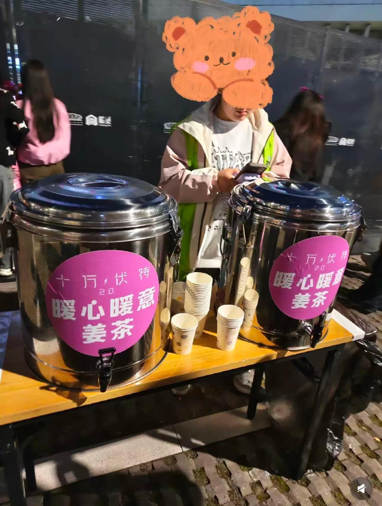 汪苏泷演唱会给大家准备姜茶 暖暖的姜茶看着就很窝心,这样寒冷的天气里汪苏泷贴心给场外的大家也准备了姜茶,是双向奔赴的很全面的爱了