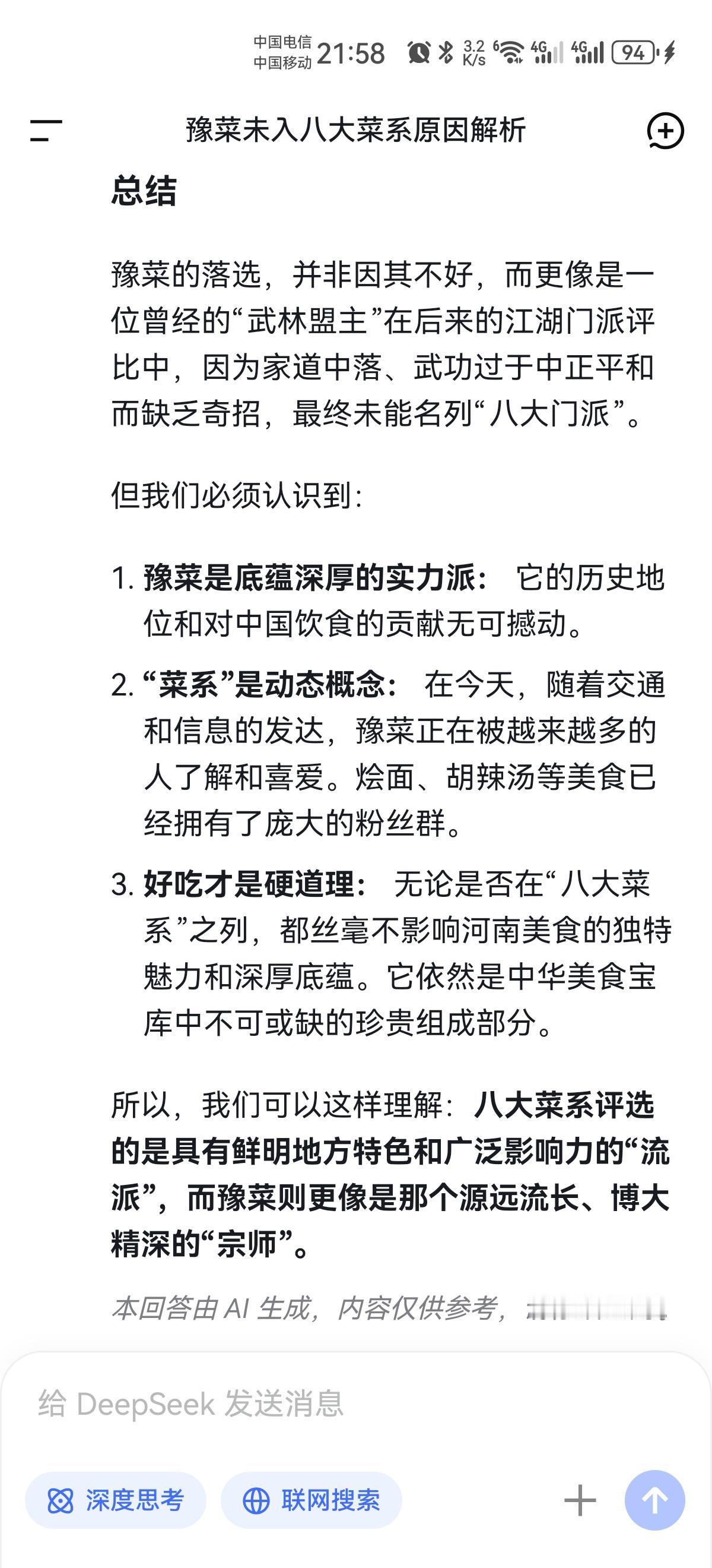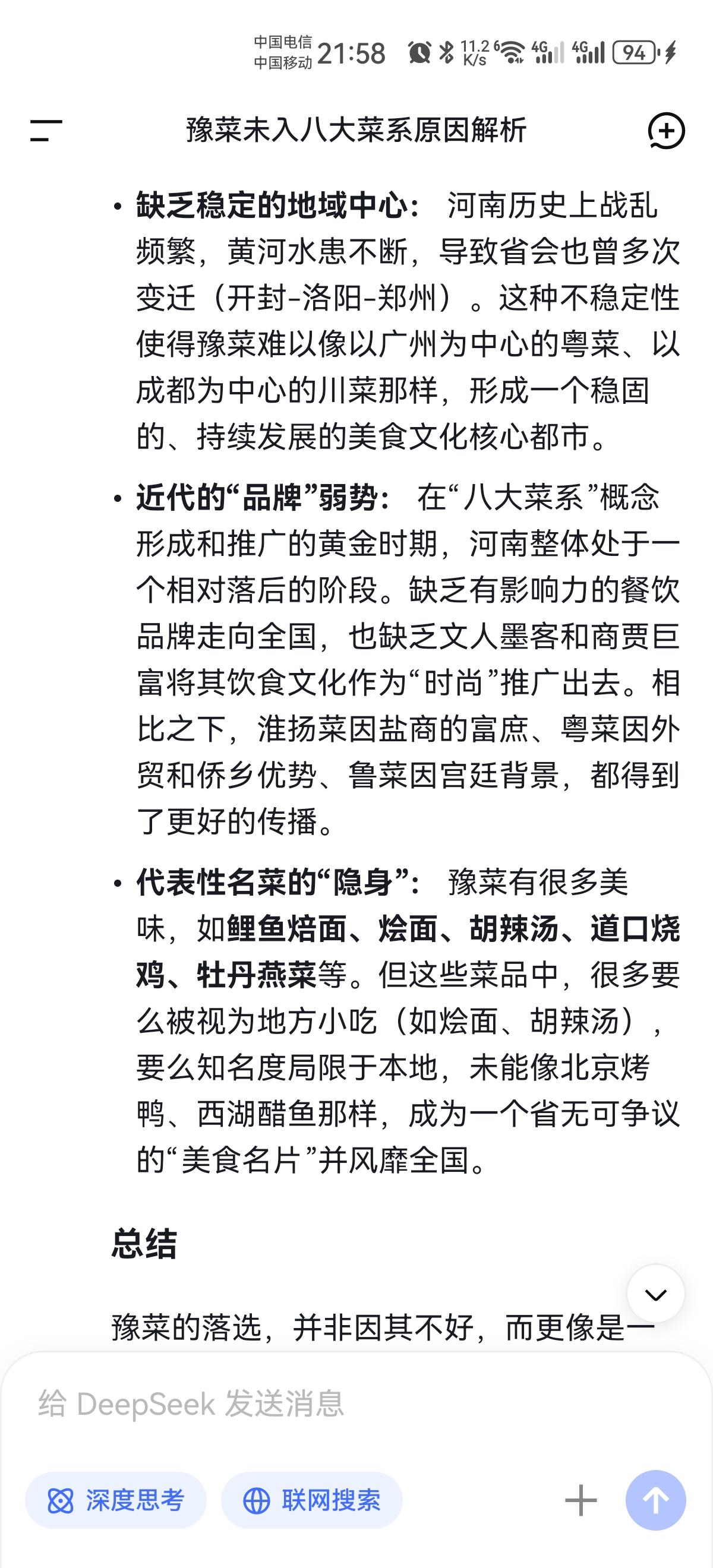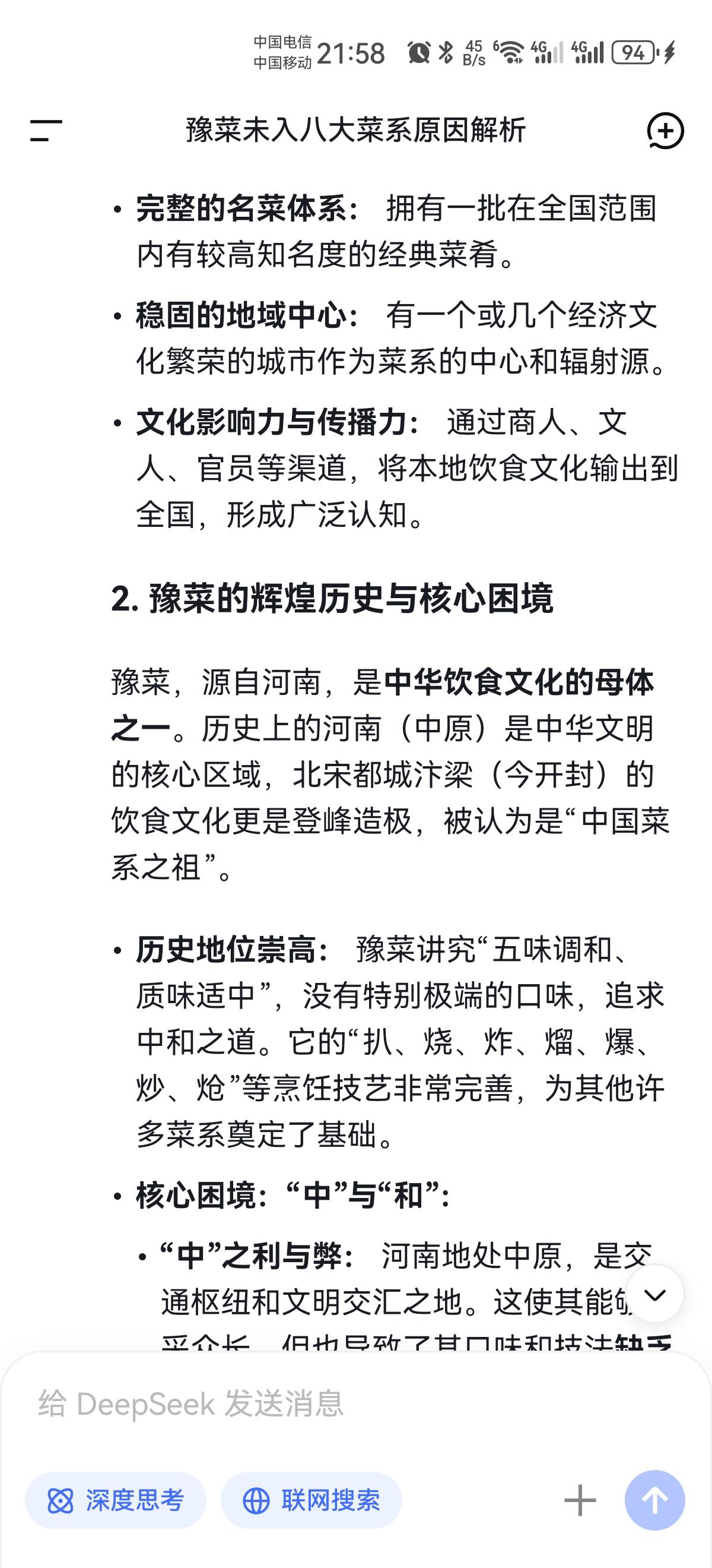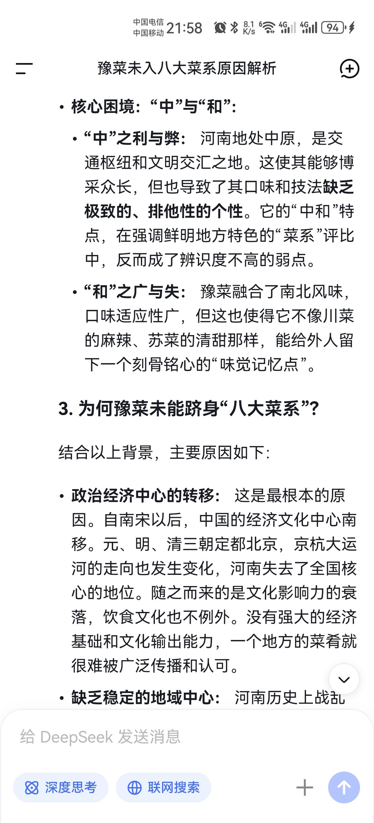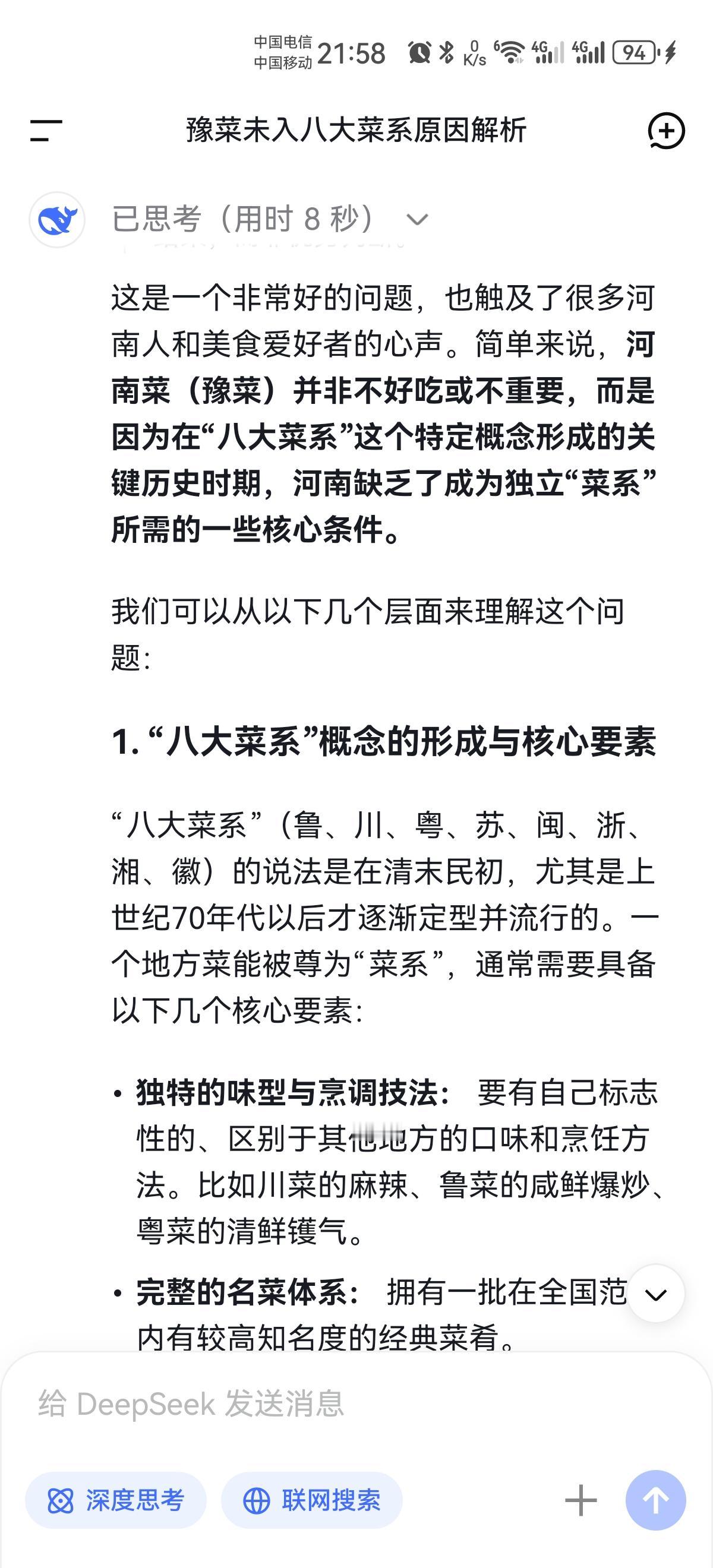 作为销售老油条,我有话要说, 我国有八大菜系,作为河南人,我特别好奇,为何没有“豫菜”?就问了下Deepseek原因为何?条友们,没有“豫菜”,你们好奇不?十大菜系品牌 郑州江浙菜 河南老豫菜 豫菜老品牌 河南几样菜餐饮 豫菜初体验 河南菜镆