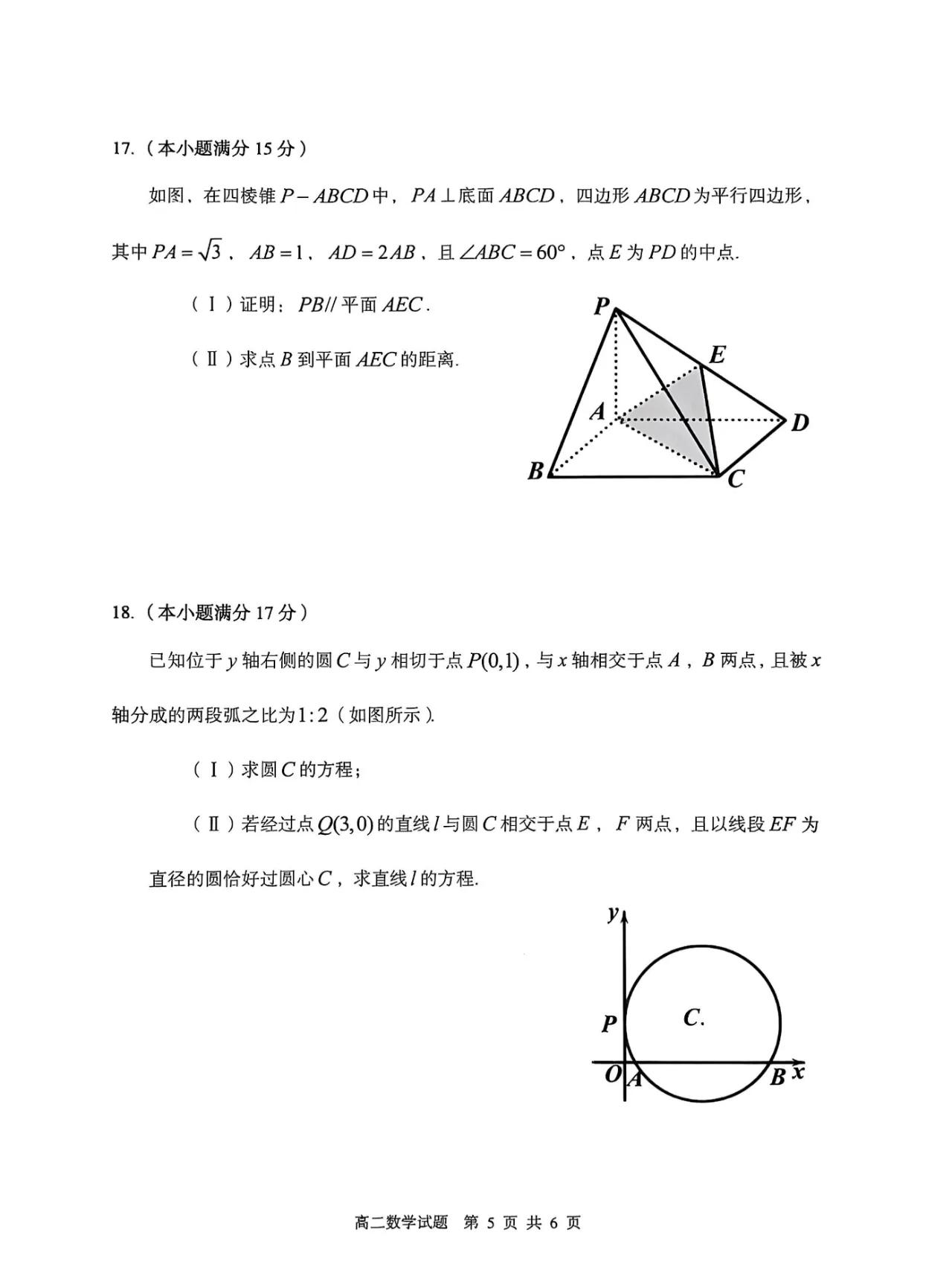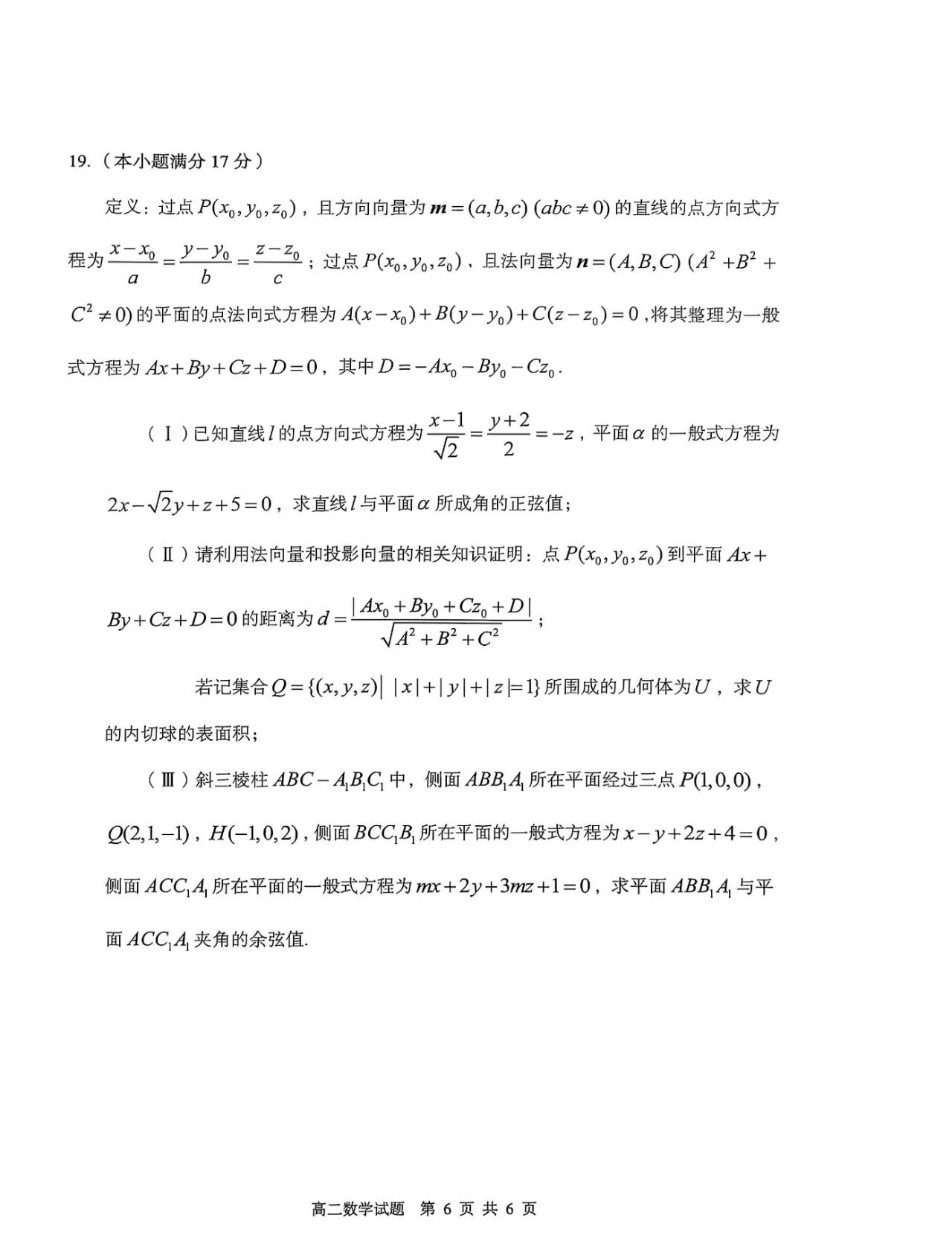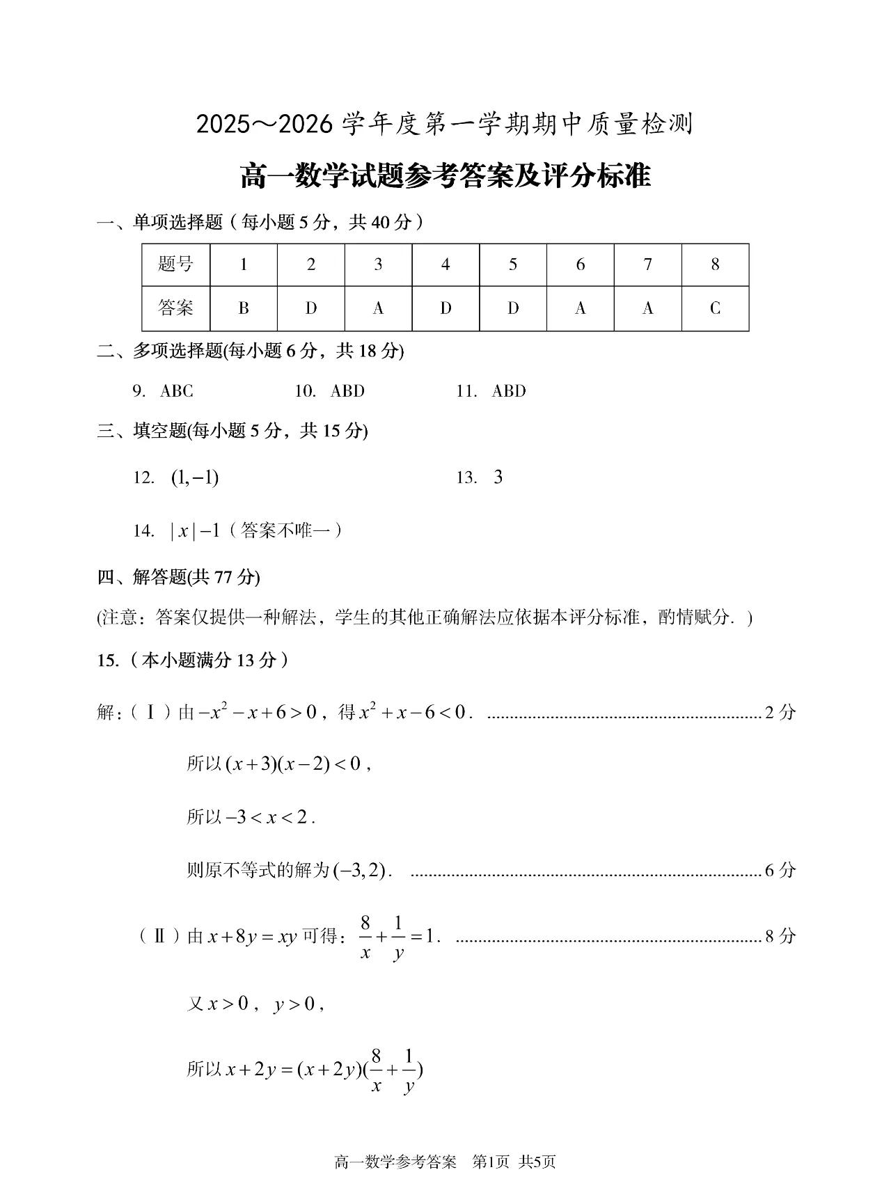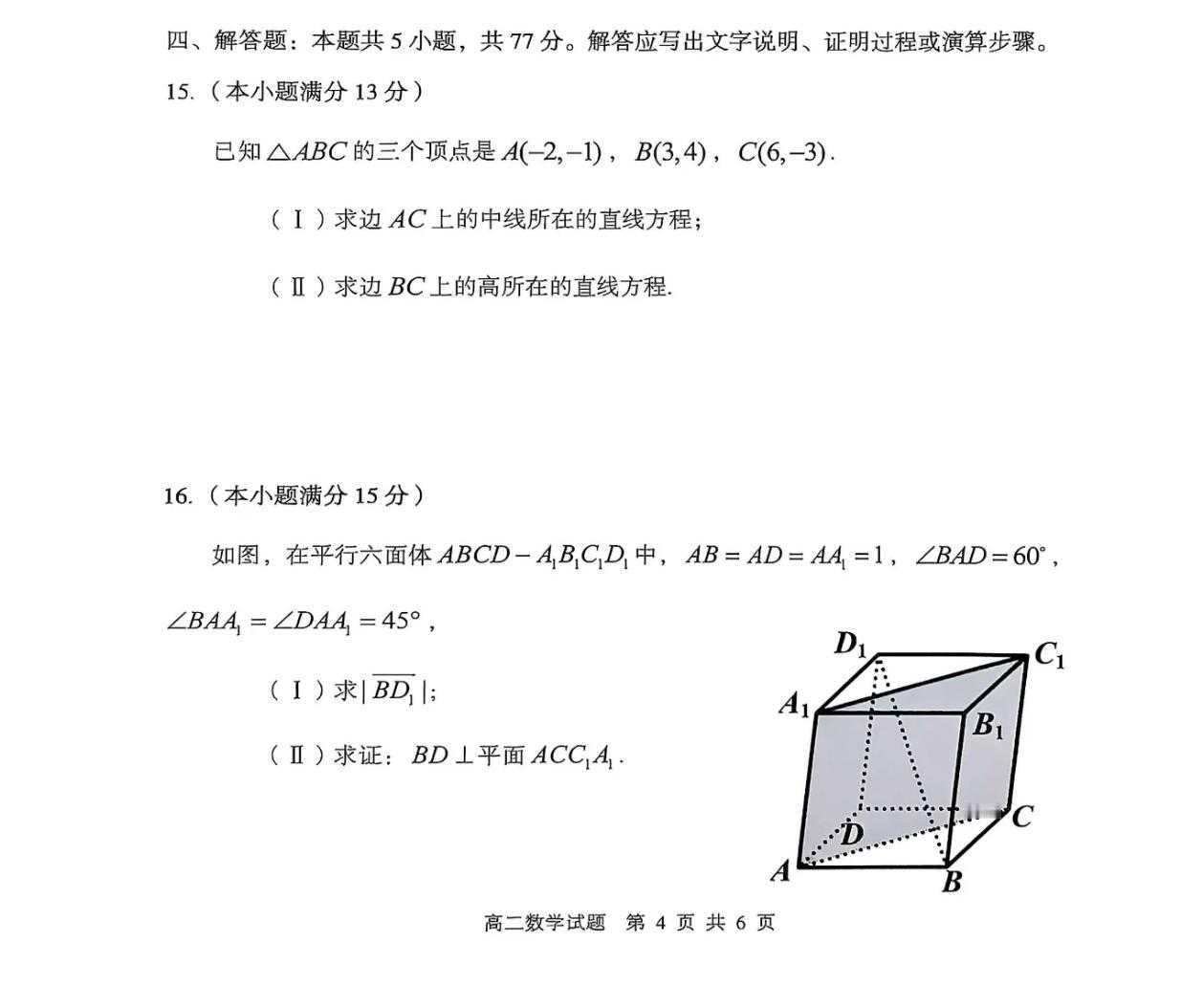 山东省枣庄市滕州市2025年高一、高二上数学期中大题及其答案。