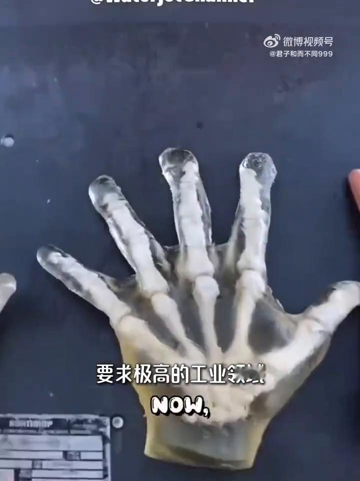当子弹置于超高压水刀下会被瞬间切断,若将人类手掌置于同等力量之下又会如何?这便涉及水刀切割技术,通过超微喷嘴将水加速至子弹速度,其威力足以穿透最坚固的材料,无论是防弹玻璃还是诺基亚手机,这项顶尖技术常用于对精度要求极高的工业领域。 当测试人员用仿生手进行实验时,水刀不仅瞬间切穿表皮组织,持续冲击下更是直接穿透仿生骨骼。