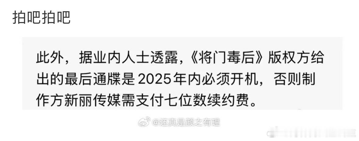 疑似王鹤棣退出将门毒后 在粉丝的不懈争取下,王鹤棣疑似真的退出将门毒后了!!! 手握将门毒后影视化版权的新丽得再码个新班底出来了,2025年不开机的话貌似要给版权方7位数的赔偿.....这么大一个饼,沦落到这个地步.... 现在开心的可能只有王鹤棣粉丝和原著粉了