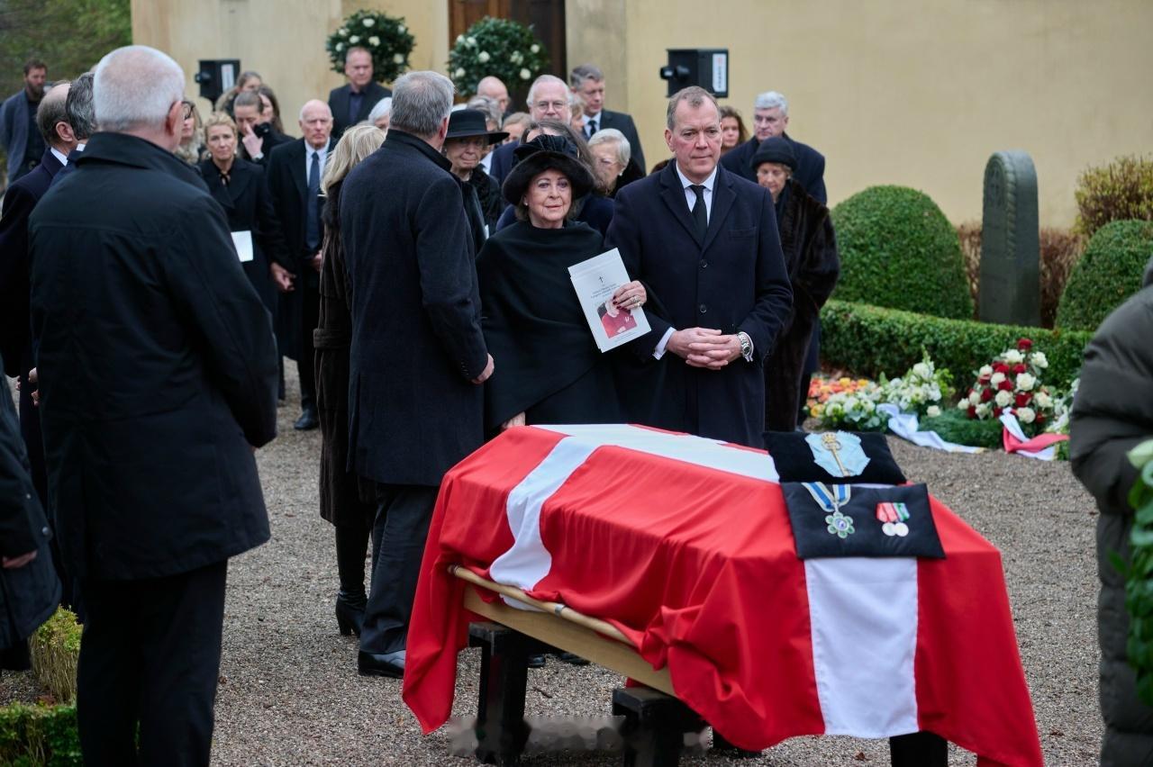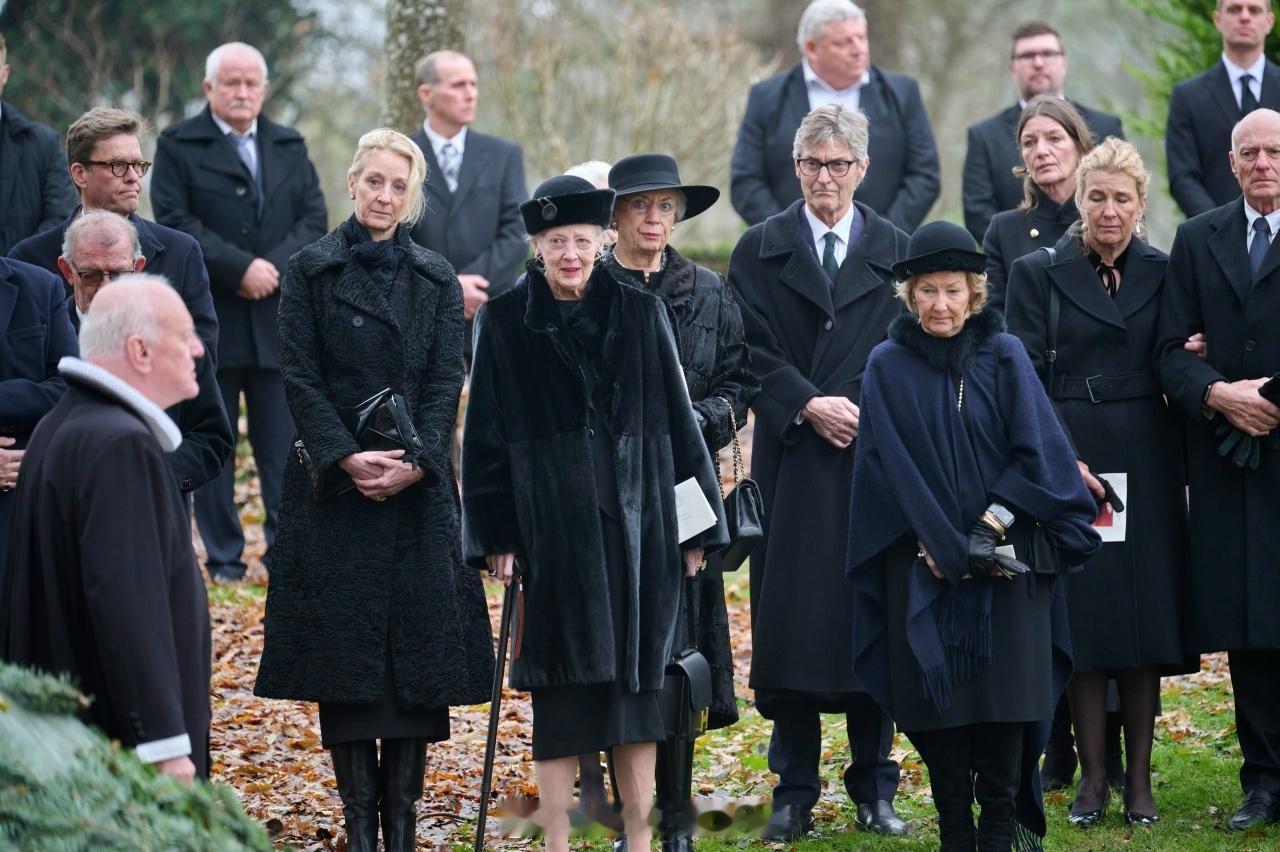 11.19 丹麦玛格丽特二世女王、二公主本尼迪克特和挪威王后宋雅参加普雷本·阿勒费尔特-劳尔维格伯爵的葬礼资料显示普雷本跟玛格丽特和本尼从小就认识,也是本尼后来大女婿迈克尔的姑父(图4资料照片);另一方面普雷本妻子布雷塔则是挪威人,跟哈罗德跟宋雅认识多年