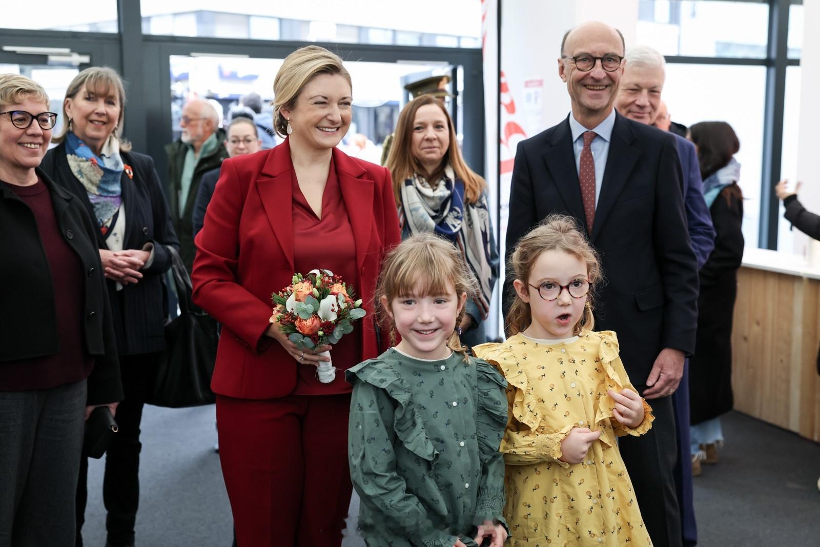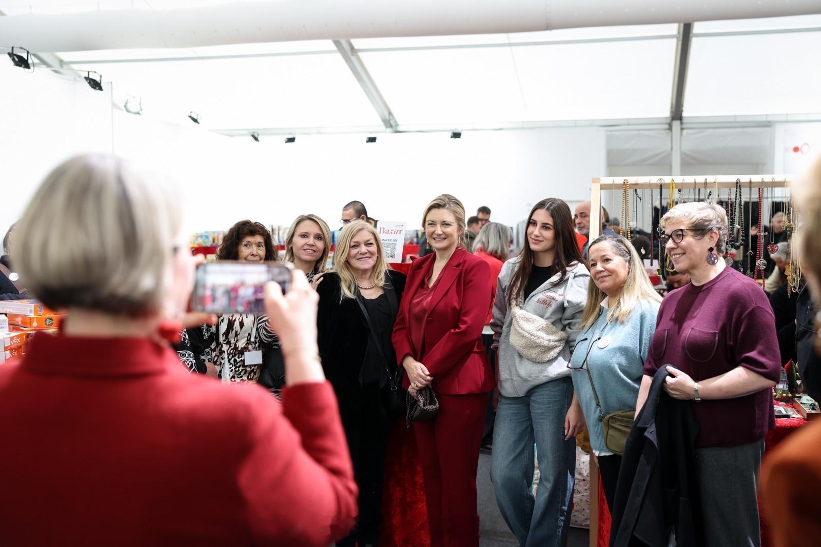 11.29 卢森堡大公夫人斯蒂芬妮出席传统红十字会集市的开幕活动,红裤装来自Ho