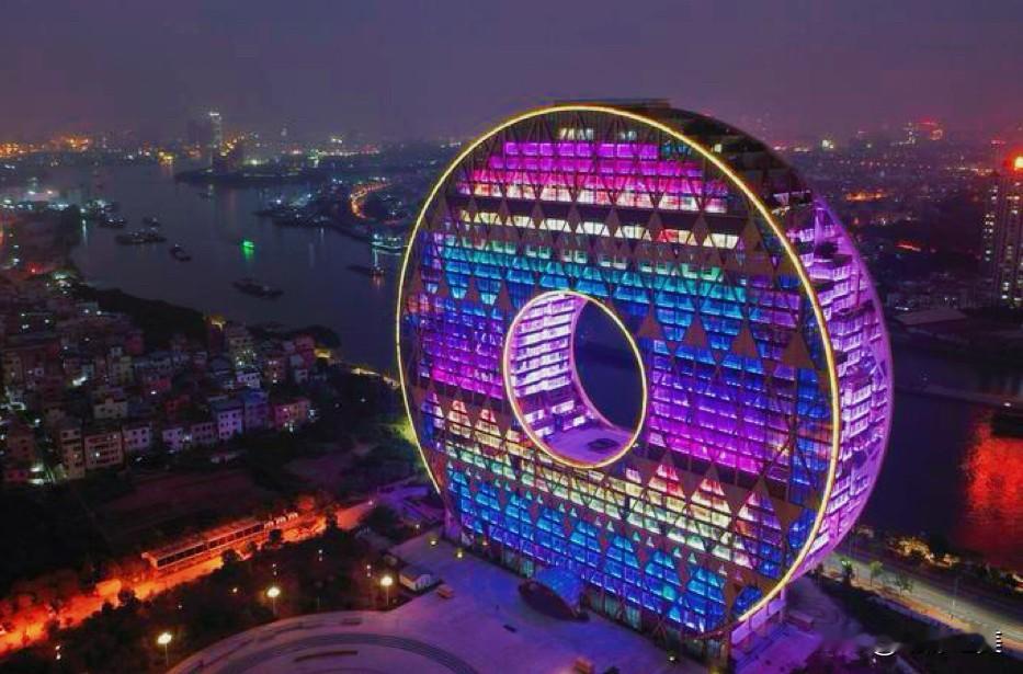 广州圆大厦是地标还是低俗? 12.24亿起拍你要吗?这座位于广州市荔湾白鹅潭的广州圆大厦(俗称铜钱大厦)第四次拍卖,起拍价12.24亿元,因无人报名再次流拍。回顾第三次拍卖的起拍价为13.6亿。2023年8月首次起拍价为55.89亿。缩水之速度令人瞠目结舌。 说是当年的地标建筑也不为过,因为建成之初周边大都是村屋,它以146.6米的外圆直径,138米的高度雄踞江边,夜晚灯光映衬下的江面流光溢彩。原本大楼的设计理念是“水轮车”,与珠江倒影形成8字,寓意风生水起。当初可是广州市重点工程,鸿达兴业集团投资10亿兴建,大厦征名费都高达10万。 说它低俗是因为它形似铜钱,广州人虽务实赚钱但也不钻钱眼。更何况有网友说外圆内方才是铜钱,外圆内圆这叫穿心煞。鸿达兴业的兴旺与破产与穿心煞是否相关不得而知,与铜钱大厦相关倒是大家都知的故事。 欢迎分享你所知道的广州圆的兴盛与落寞。(图片来源于网络)