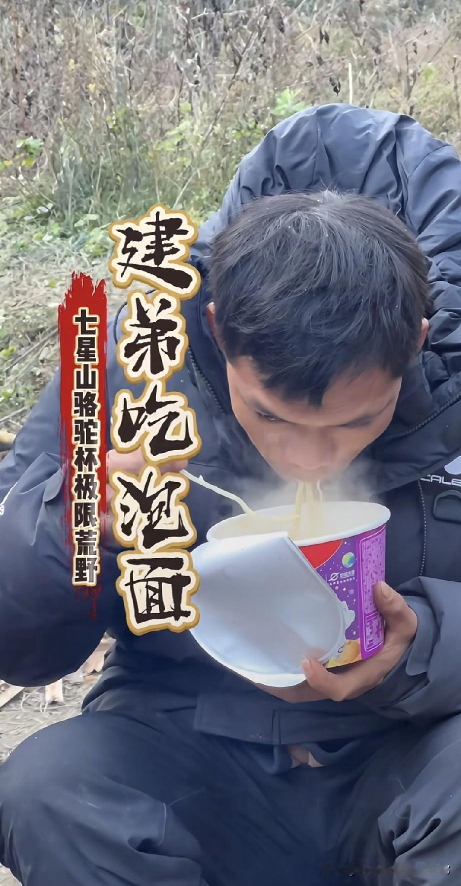 荒野求生的“顶奢”,居然是这碗泡面! 张家界七星山的野地里,建弟捧着泡面目不转睛——热气裹着调料香往鼻子里钻,那狼吞虎咽的样,像极了咱加班到后半夜,嗦第一口泡面的“续命爽感”。 评论区都笑:“这哪是荒野求生,明明是泡面测评现场”,可谁没懂那种“饿狠了,廉价泡面也能香出天际”的滋味?小时候春游啃干面包,现在加班炫泡面,最普通的吃食,偏是饿时的“救命粮”。 但我想问:荒野求生该是“啃树皮嚼草根”才叫真?还是这种“带桶泡面去荒野”的接地气,更戳普通人的生活感? 你们觉得这碗泡面,是荒野求生的“作弊”,还是最真实的烟火气?