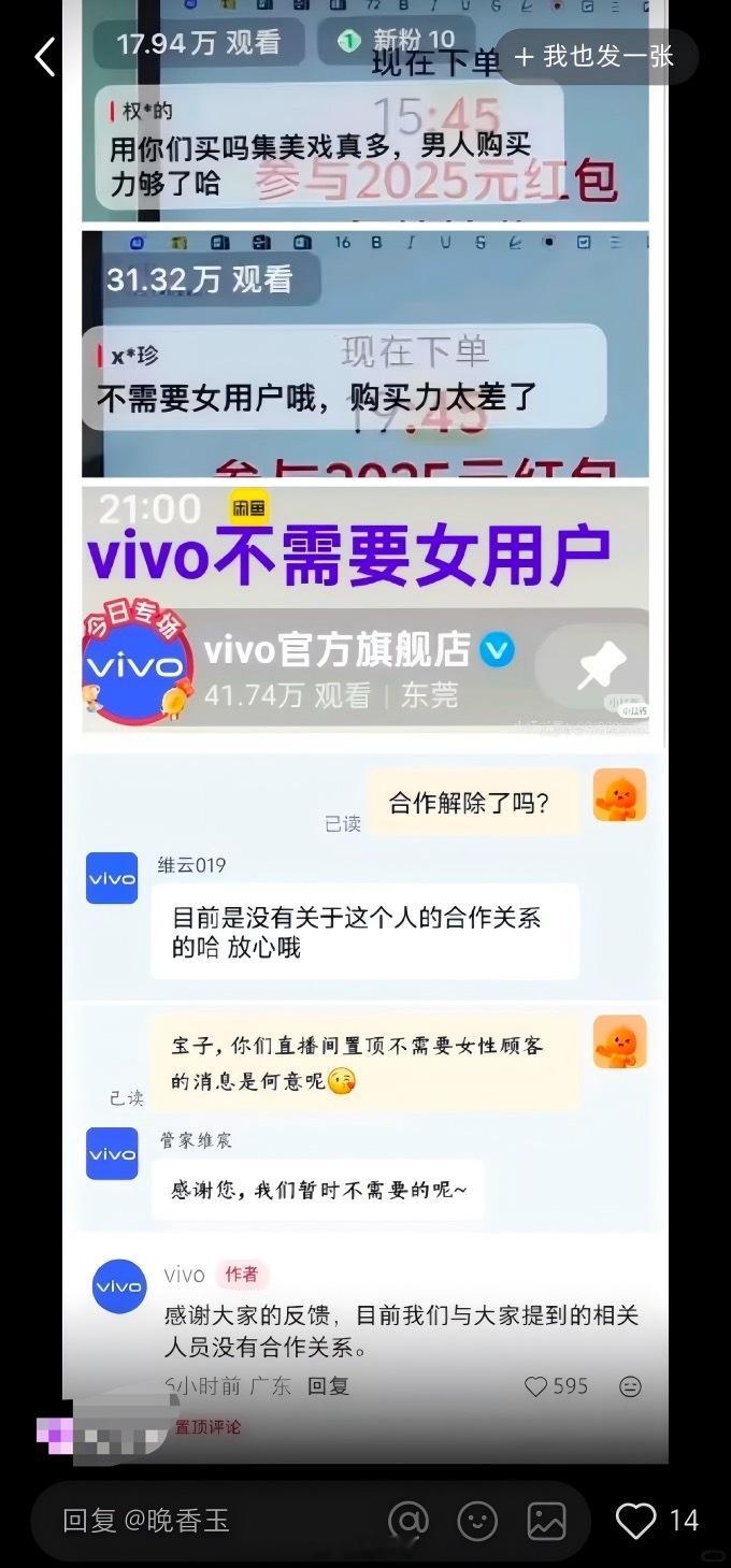 vivo这两年是卖的太好了我看有些人是有点坐不住了,八竿子打不着的事,也能硬生生的把vivo扯进来!某up主的言论跟vivo有什么关系?就因为两个月之前合作过,现在就开始疯狂的带vivo节奏?这些人在米哈游和逆水寒这些游戏圈讨论也就罢了我没想到这群人极端到了这种地步把反串评论截图拿出来,扣在蓝厂头上,说成是蓝厂的表态!我给你们普个法,这是造谣,你们知道吗?别有一天,啪!进去了,又哭着说:我什么都不懂,我不知道!说实话,你讲vivo的产品不管是好的坏的,大家都愿意去跟你聊!哪怕是批评,vivo也能听得进去!但是有预谋有组织的刻意抹黑和造谣可要小心了,我发这条微博是想跟大家说说,做人啊,一定要独立思考,明辨是非!别被人当枪使了还不知道!