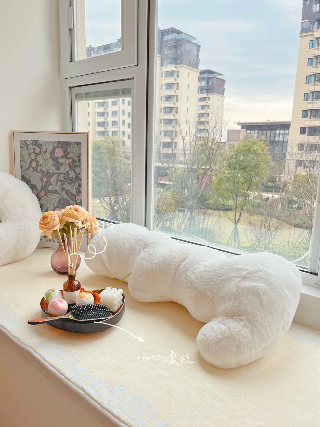 飘窗这次放上了飘窗垫,可以坐在飘窗上看风景了.