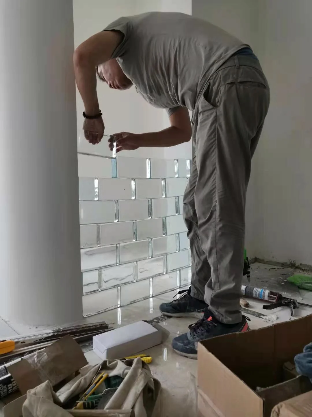 玻璃砖砌好了,但是强迫症的我打算拆了😤