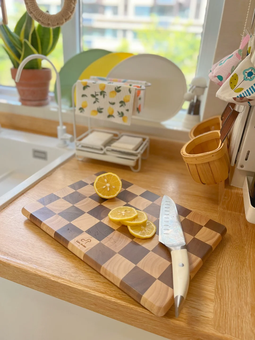 ✔️最近买的棋盘格菜板和我家台面也太搭了,妥妥的日系风,下厨也有好心情,好看就完了🤣