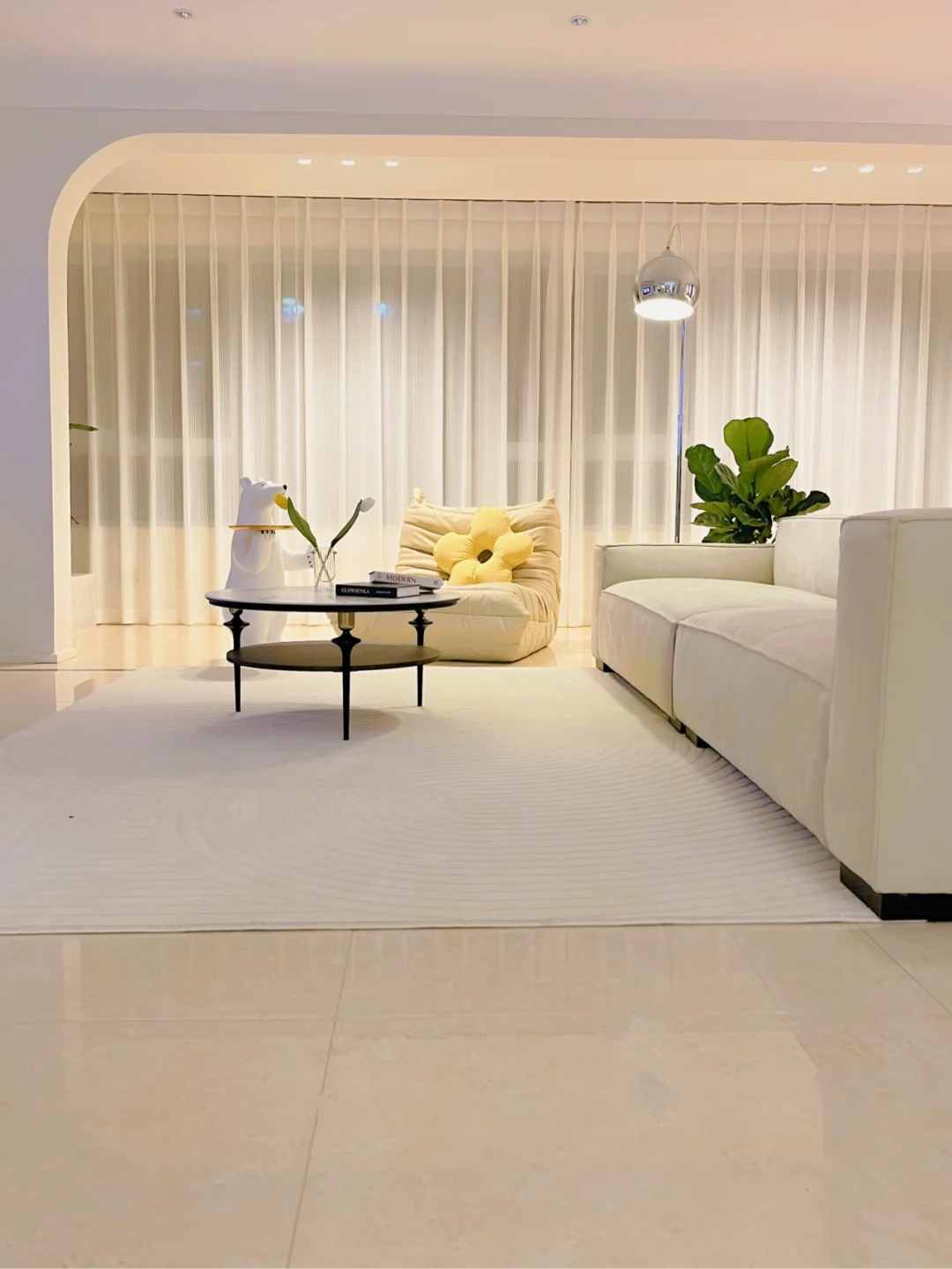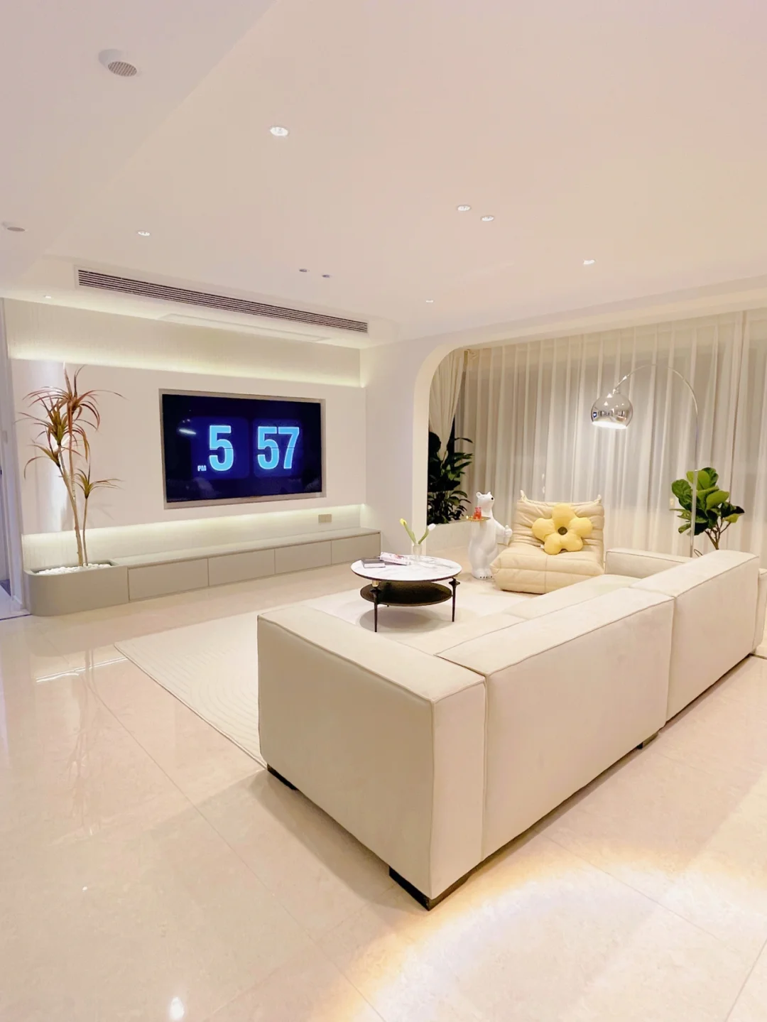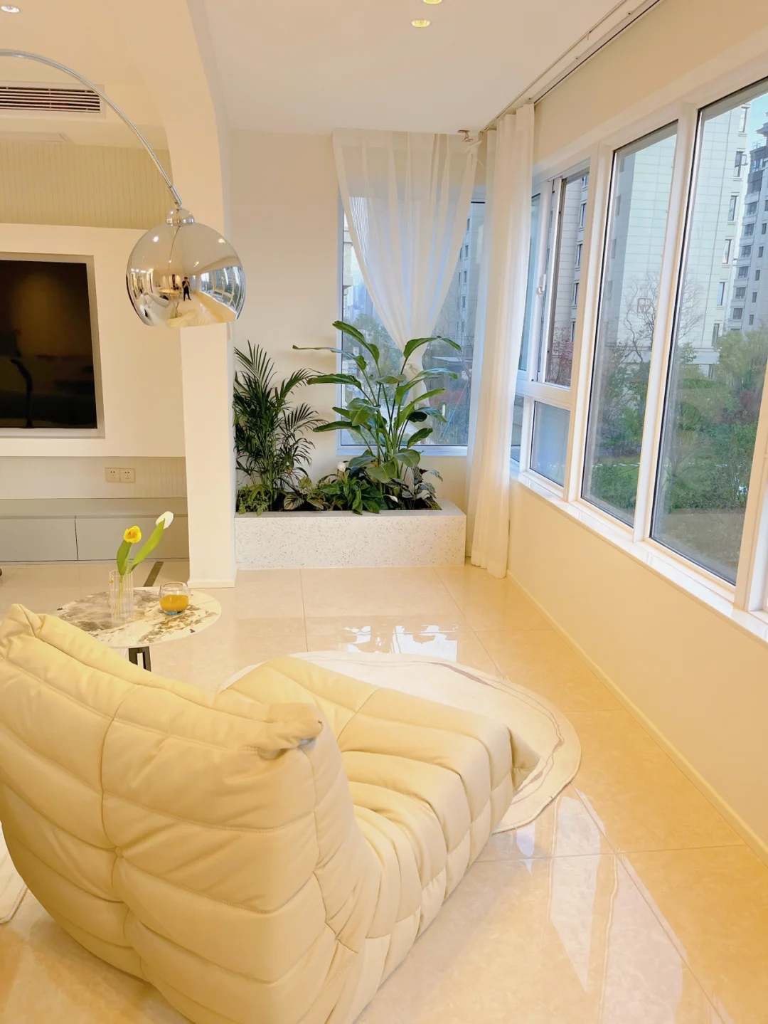 其实我家只有120平! ✔️砸了一个房间 ✔️阳台与客厅打通、地砖通铺 ✔️大白墙 ✔️无吊顶 ✔️无主灯 …… 💛这些就是我家显大秘籍了‼️