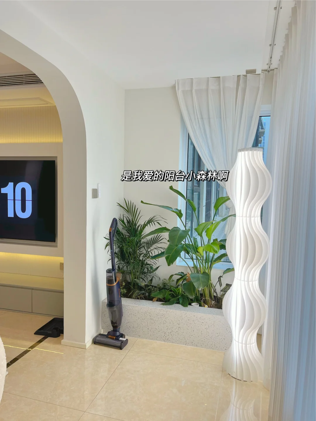 5⃣️阳台不晾衣服、不做过多储物柜,打造了一个小花池,家里能看到这样一片绿色的小森林,心情都很舒畅