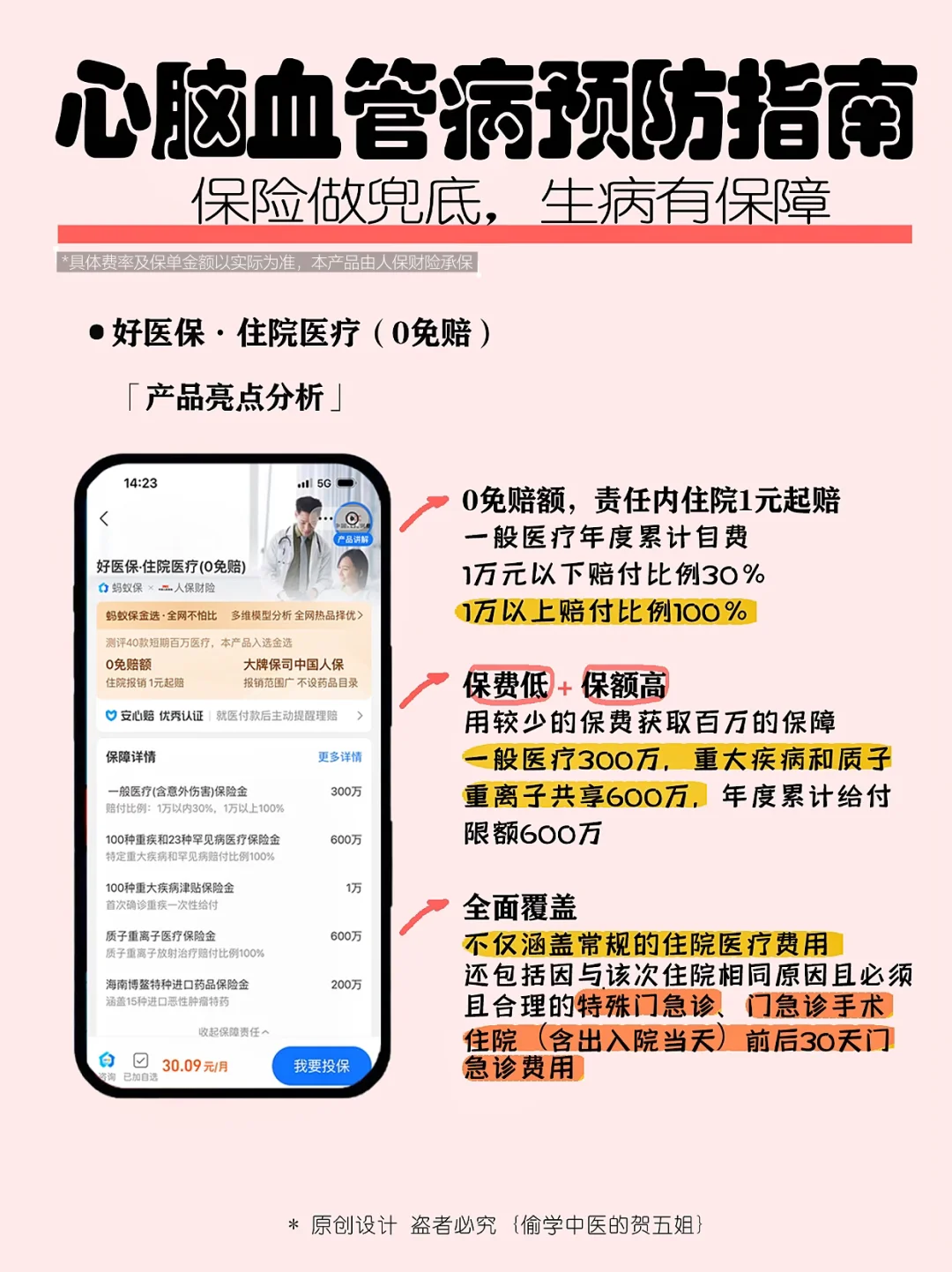 心脑血管疾病其住院率、发病率均极高,而医保报销比例有限!因此,购买一份住院医险是兜底保障的关键[赞R][赞R]