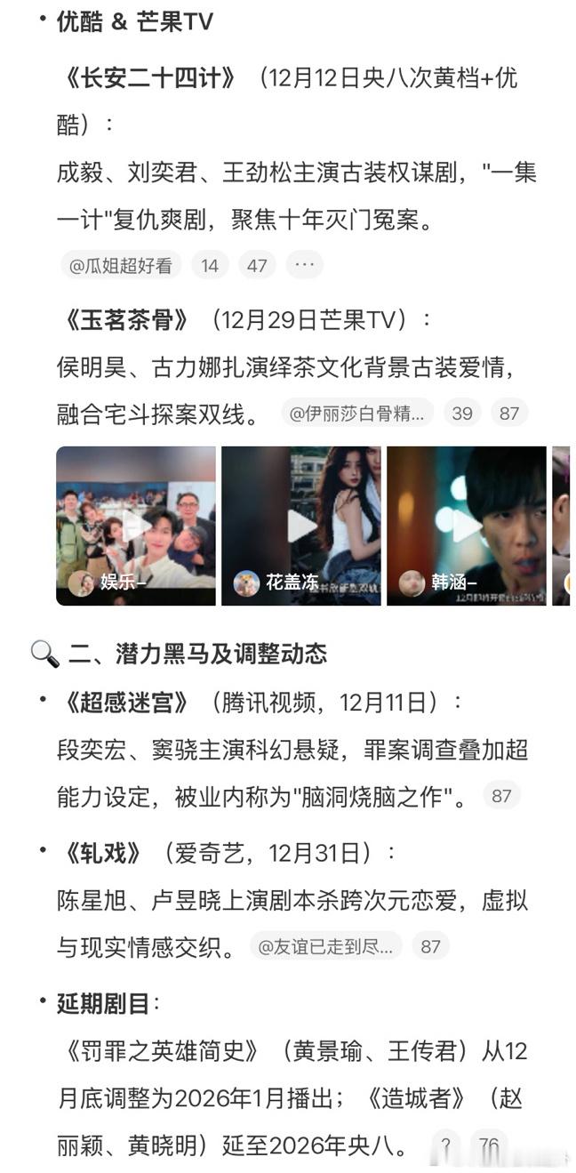 12月待播新剧 智搜总结的这个量挺夸张的。
