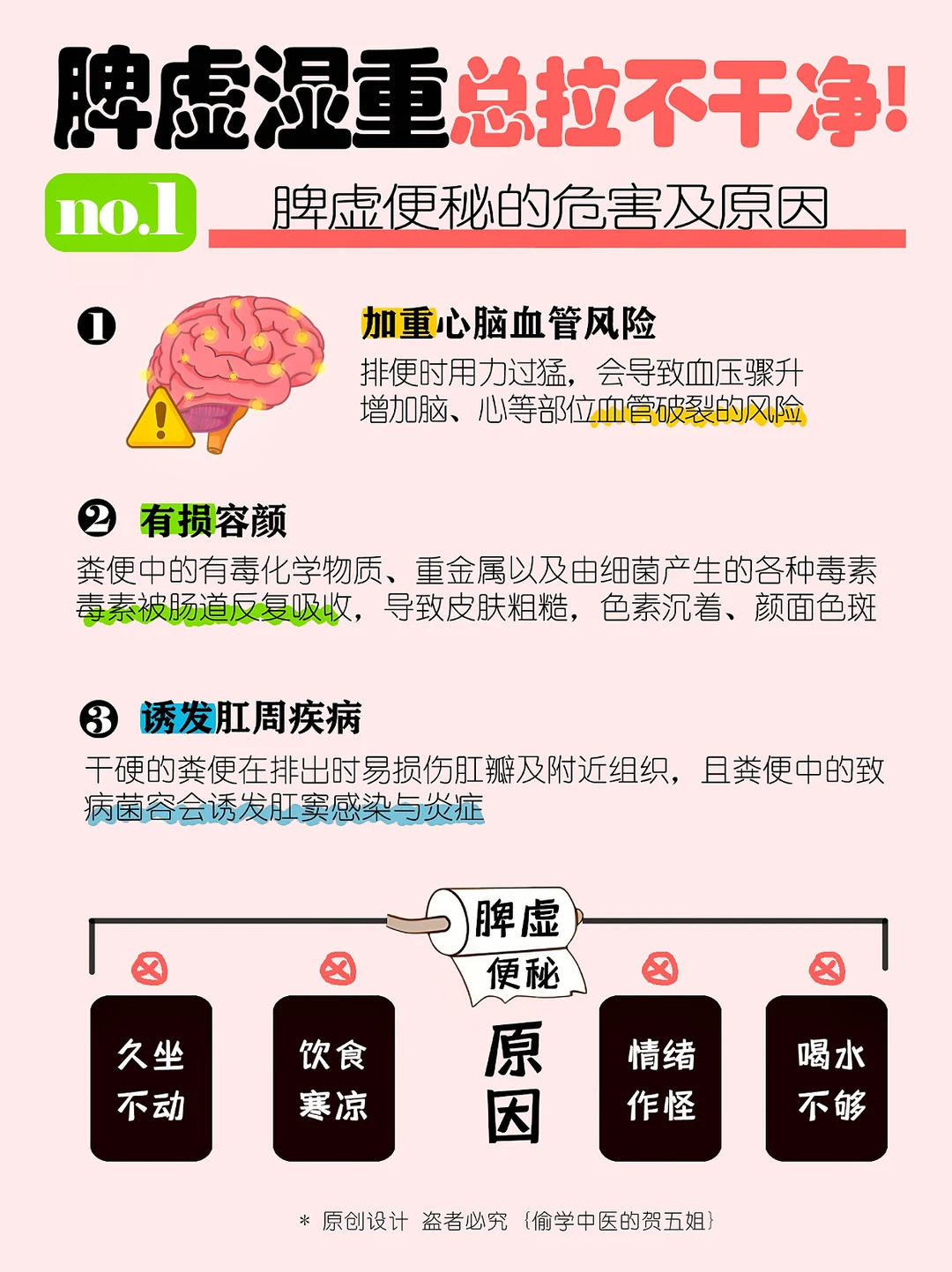 1⃣️脾胃运化失常:导致湿气内生,肠道蠕动无力