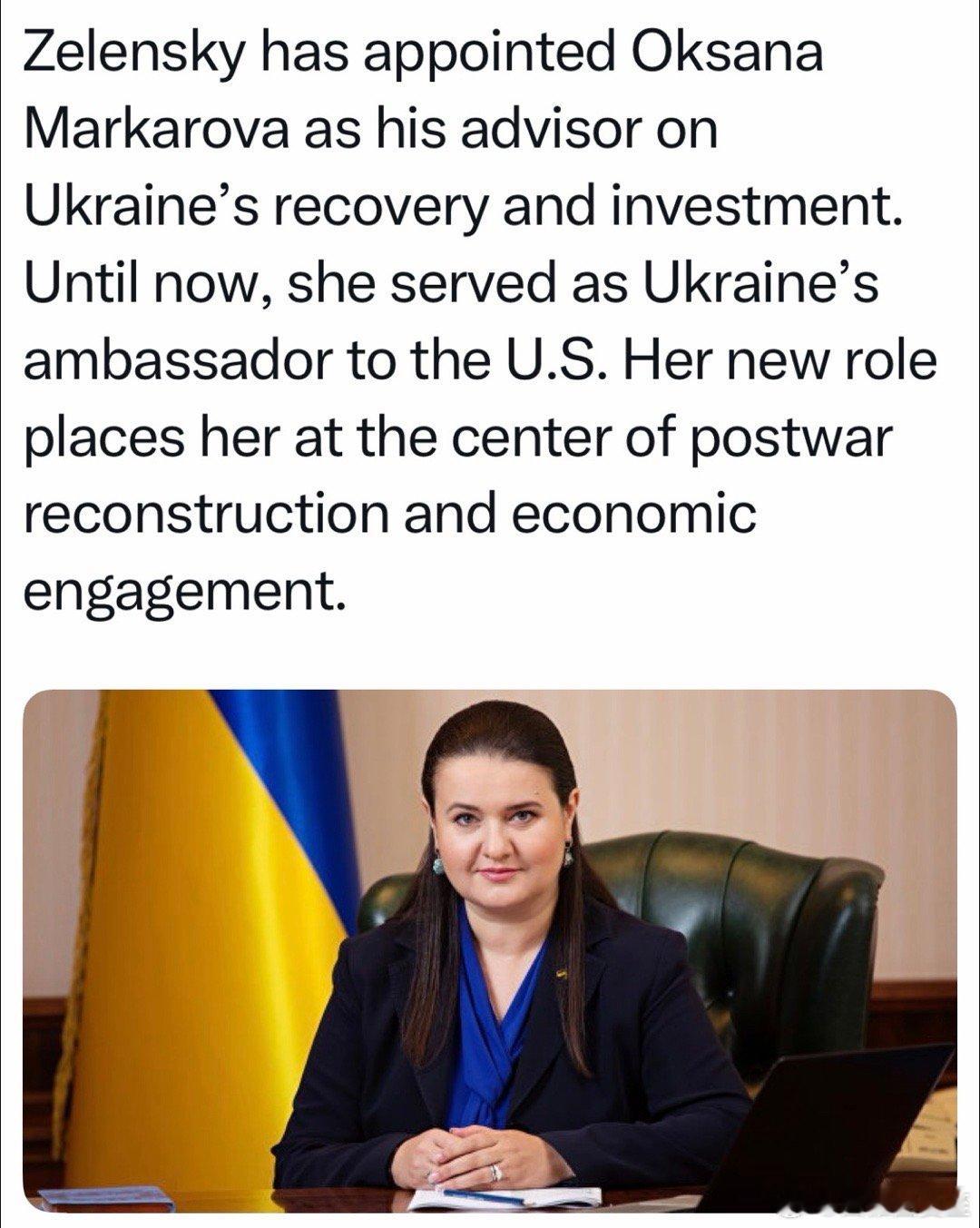 乌克兰前驻美大使,被新任命为:负责战后经济、重建/投资的总统顾问