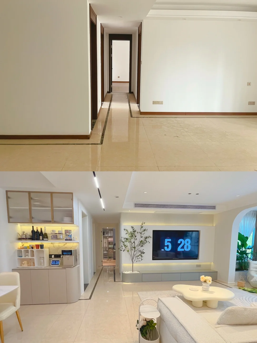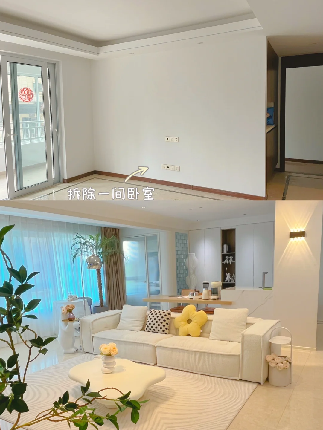 关于我家:套内125平,建面140p 精装房改造 ✔️砸了一间卧室 ✔️客厅阳台打通 ✔️无主灯 ✨硬装花费4W,花小钱办大事就是我呀!