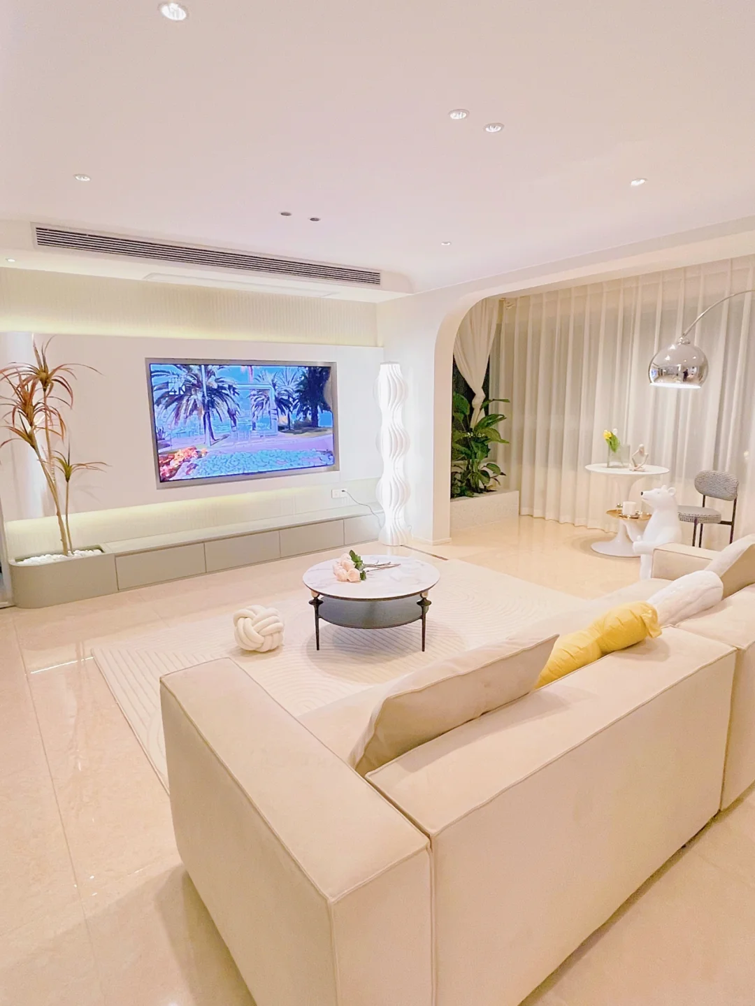 2⃣️客厅阳台打通,地砖通铺,客厅瞬间扩大了2倍!