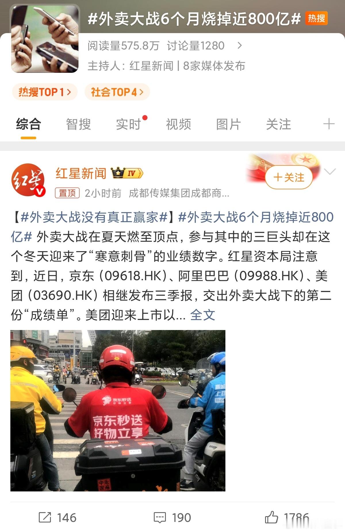 外卖大战6个月烧掉近800亿半年烧了800亿,确实刺激了市场,但当大家习惯了个位数的奶茶、外卖,现在外卖平台补贴停止了,请问大家还点外卖吗?