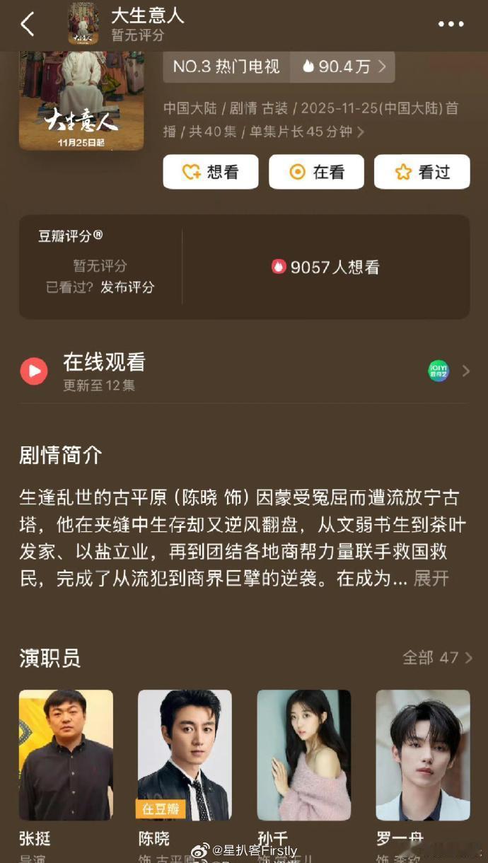很多人在陈晓离婚后,还希望能与赵丽颖复合,但这也只能是痴人说梦,完全不可能。两人不仅感情不能复合,事业也很难有交集了。撇开两人之前的恩怨情仇,从咖位待遇上看,也很难演男女主角平行的戏份,现在都是大男主大女主的待遇了。比如赵丽颖早就是大女主专业户,之前的《风吹半夏》也是如此,李光洁欧豪等一大批男演员陪衬,让她出彩,一举拿下飞天金鹰两个视后。而最近《大生意人》也是陈晓的定制大男主剧,剧终各类演员都是为他托举,从人设到戏份都是最高待遇。虽然这两部剧不是同时开播,不存在拼收视,但缘分依然把两人联系在一起,因为《风吹半夏》和《大生意人》竟然出自同一编剧,而且几乎是同时写作完成。据爆料,编剧在那段特殊宅家的日子,百无聊赖,只能写剧本,但光写大女主或者大男主,自己都会觉得乏味,于是写两集《风吹半夏》,又写两集《大生意人》,互相调剂,才不至于自己都觉得乏味。虽然两部剧时代背景差距大,故事情节差异大,但大主角的套路是差不多的,所以能切换自如,估计当时编剧脑海里,也是联想将赵丽颖陈晓隔空联系在一起吧。