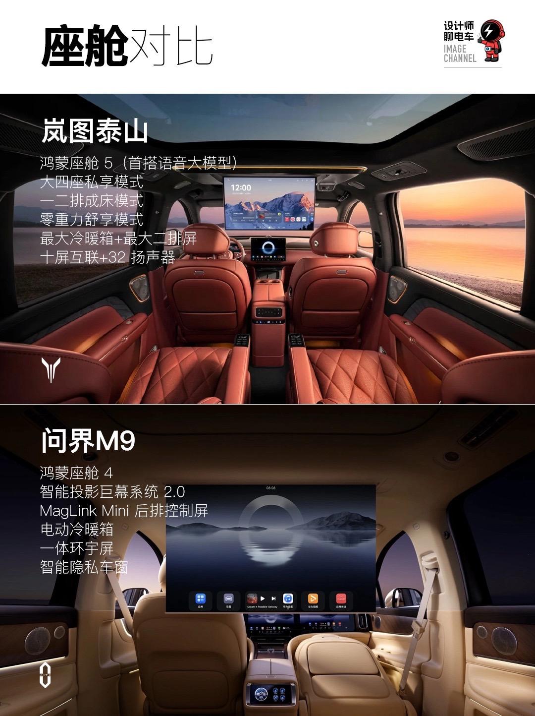 华为系双旗舰 大六座SUV新时代。岚图泰山上市后,华为智驾体系迎来双旗舰时代,同为大六座SUV的问界M9和岚图泰山有哪些顶奢科技,一起看看。