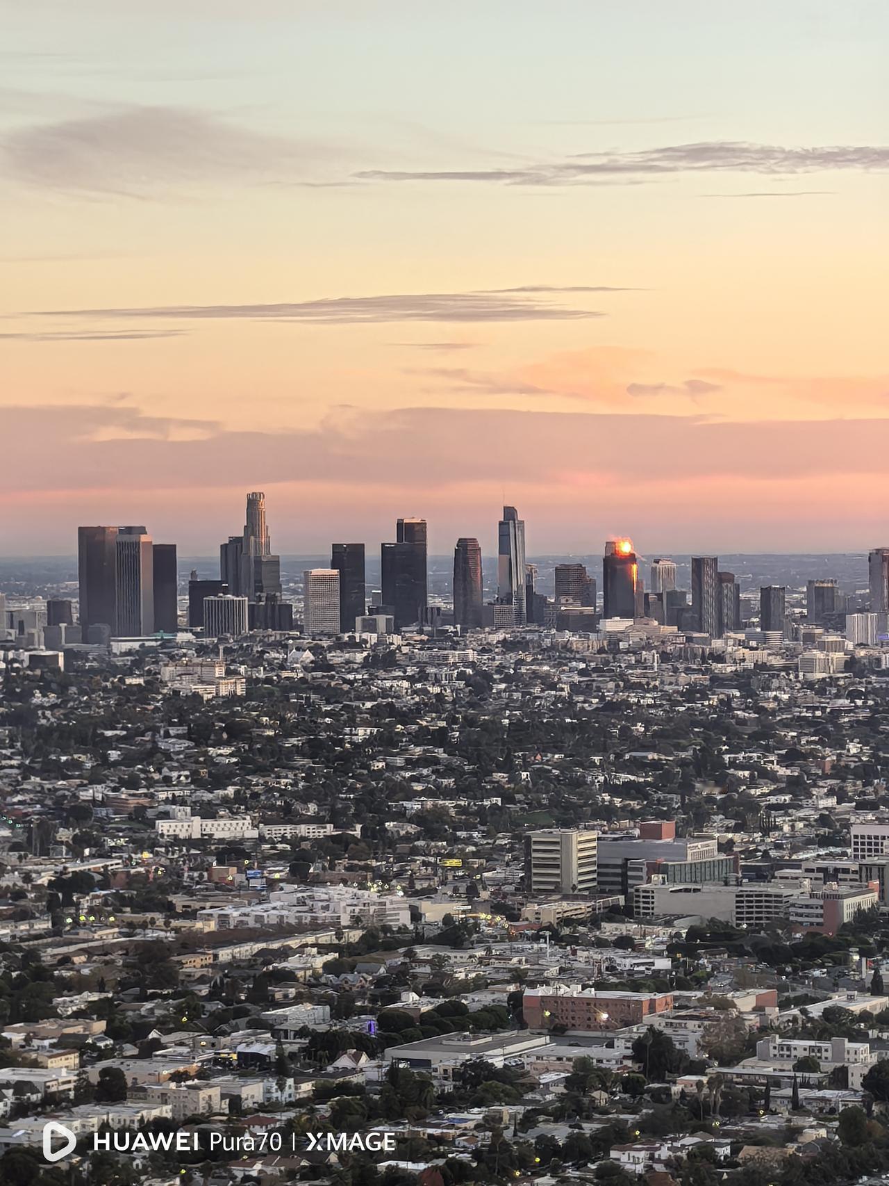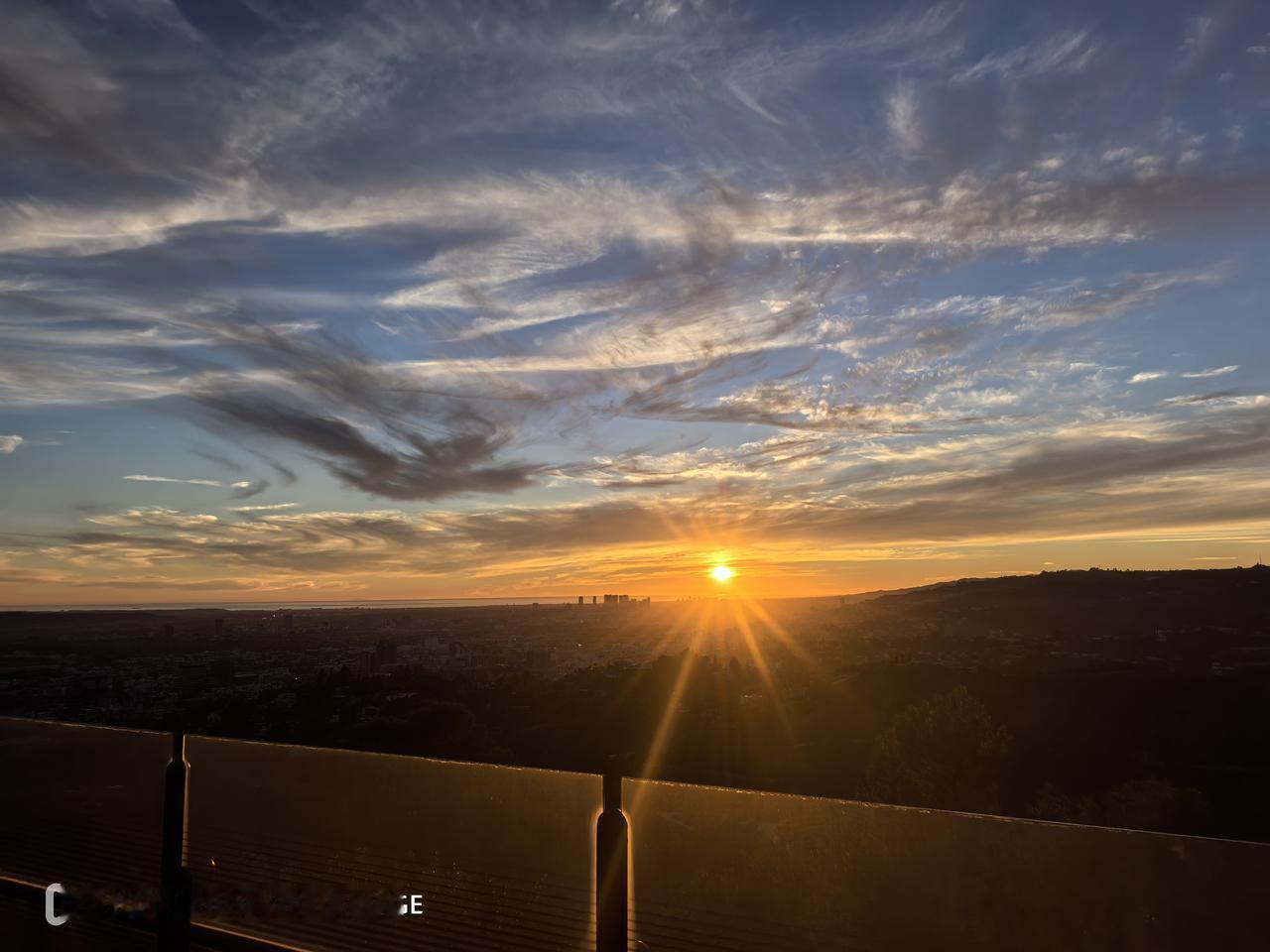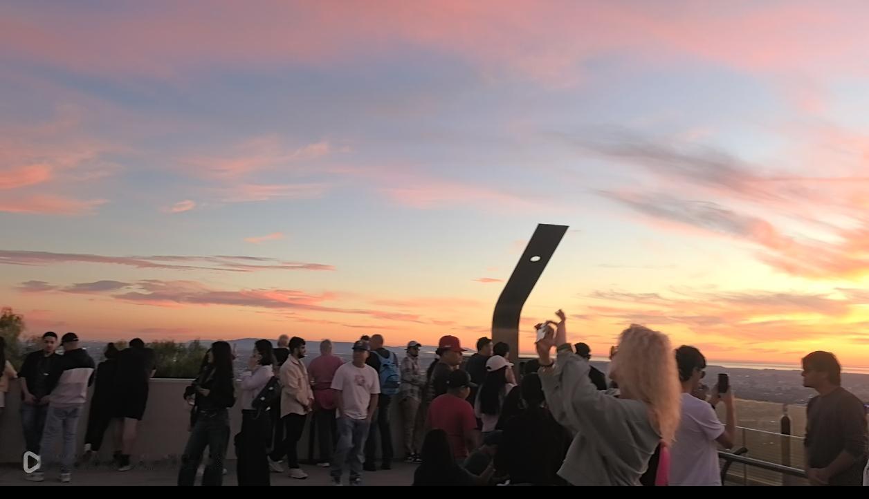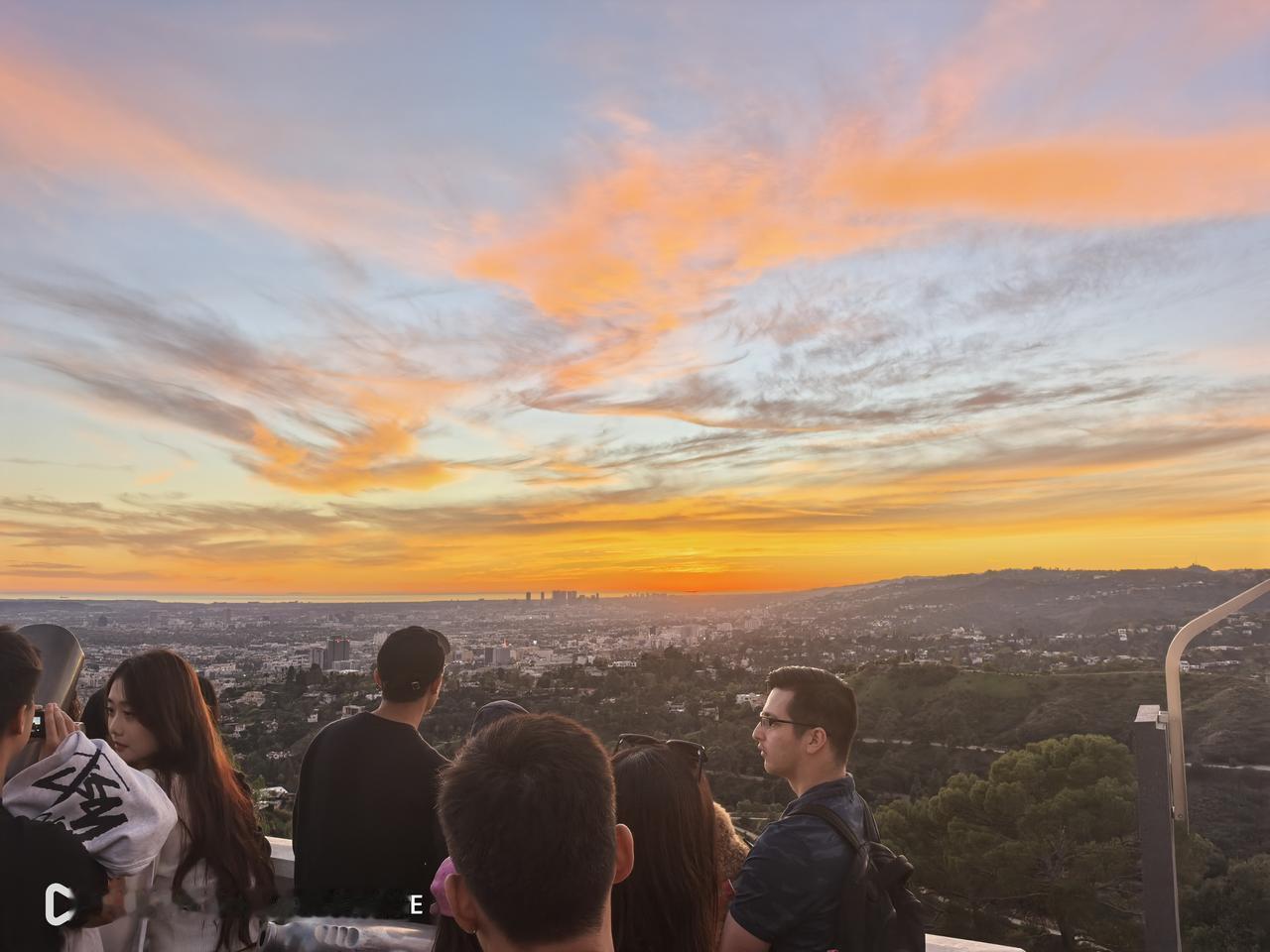 洛杉矶格里菲斯天文台(Griffith Observatory)看日落,太惊艳啦 我们从旧金山出发,经丹麦童话小镇,在圣巴巴拉住了一晚,第二天下午到达洛杉矶,入住一家叫Hyatt hotel的酒店,条件不错,套房,两个房间都有独立卫生间,还有客厅和厨房。200美元一晚上。比昨晚上在圣巴拉拉住的民宿便宜多了(480美元/晚),还有免费自助早餐。 在酒店稍作休息,便前往格里菲斯天文台看太平洋日落。天文台位于洛杉矶格里菲斯公园的山顶,是集天文科普、城市景观与电影文化于一体的地标。 天文台建于1935年,对公众免费开放。馆内设有丰富的互动展览,介绍天体运行、宇宙尺度与人类探索太空的历史,并配有天象仪可观看星空演示。遗憾的是,因是感恩节假期,天文台没有开放。我们只有在露台远眺洛杉矶市区、太平洋日落以及著名的好莱坞标志。这里也是多部电影(如《爱乐之城》)取景地。 好在天公作美,晴空万里,今天的日落特别耀眼。满天的霞光,在最西边红色霞光的照耀下,周边则呈现彩色霞光,蓝色的紫色的,整个天空就像一幅巨大的彩色画卷,让人震撼。人们纷纷举起手中的摄影设备,记录这与天空最美的邂逅。
