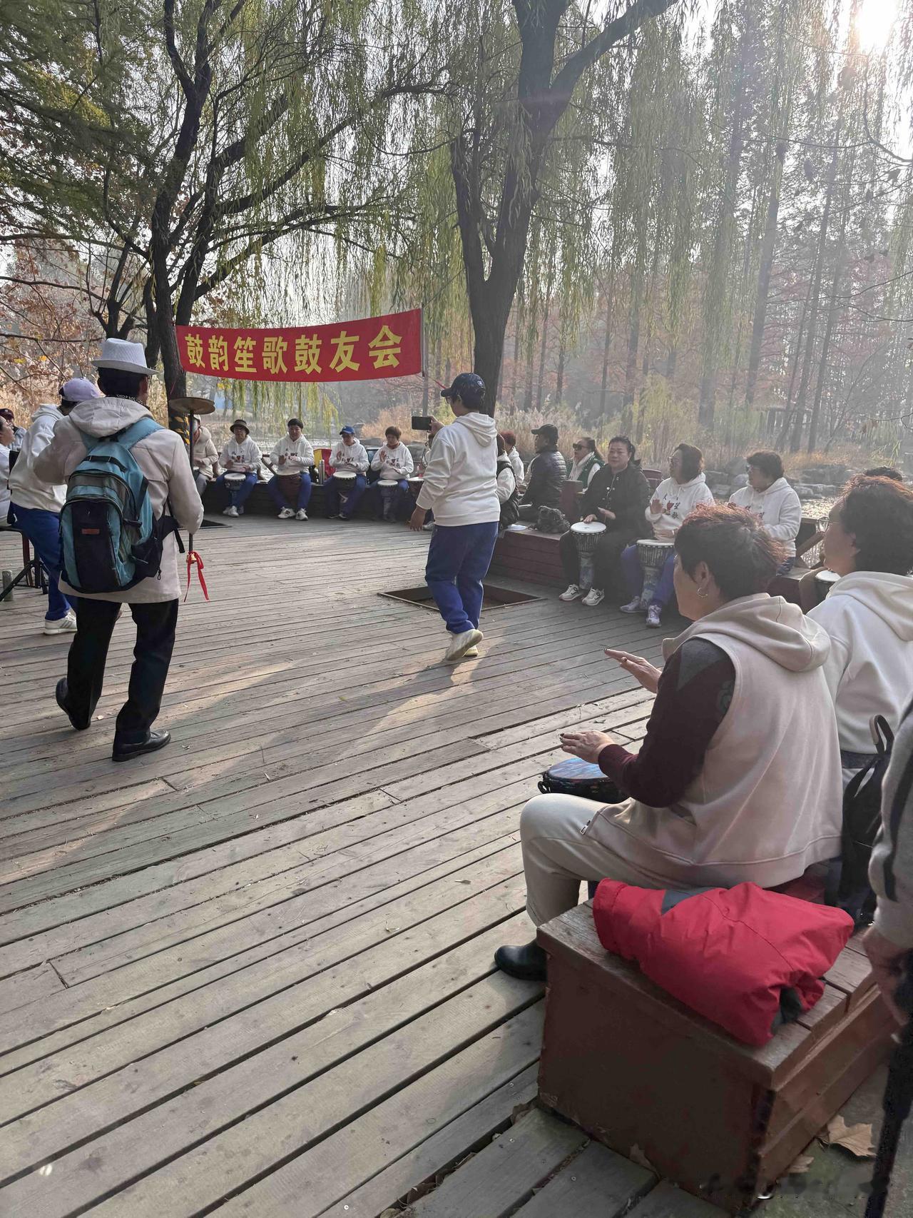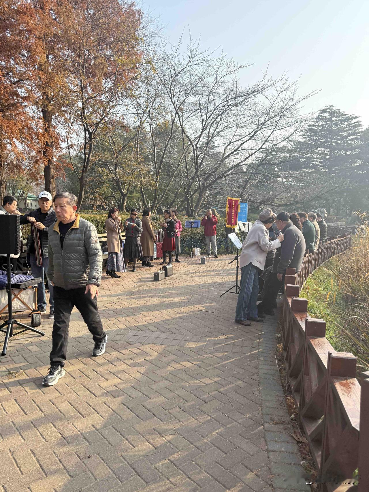 我昨天又去青岛中山公园打卡了,昨天天气睛朗,气温在8度到1 3度之间太给力了,各个合唱团队都来了,我还是先去看了山水乐组的演出,10过后又去了紫藤艺术团演出场地,咋天紫藤艺术团的美女发言人宣布今天是2025年的最后一场演出了,2026年再见了,感谢大家的支持和陪伴。中山公园里的团队可能只有百合艺术团长年不放假,只要是周末都会来演出的,除了过年放几天假之外其他节假日会调休的,只要不是刮台风下大雨下刀子都会来演出的,不过这个情况不是他一家跳交谊舞的和百合有一拼,跳交谊舞的恨不得2 4小时不要停下来有的都不愿回家了,他们的工作时间长谁都比不了的,这种精神公园是不是应该发个先进集体和个人的奖励一下吧。原创。