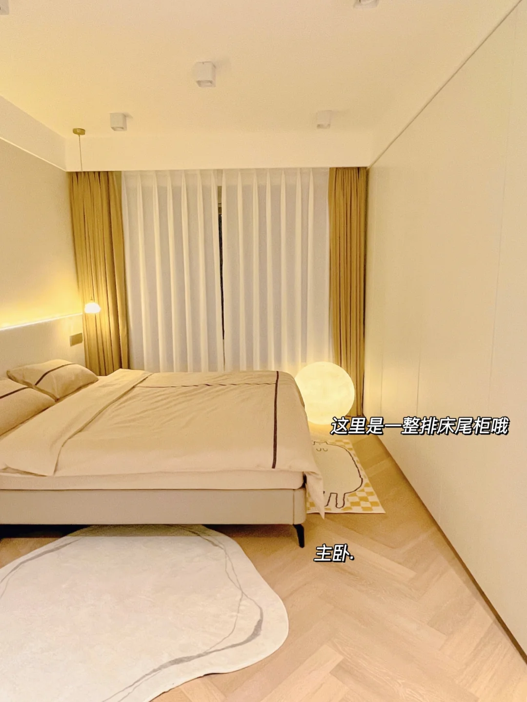 ✔️主卧床头硬包➕无床头、床尾柜,整体搭配下来是宁静适睡风格
