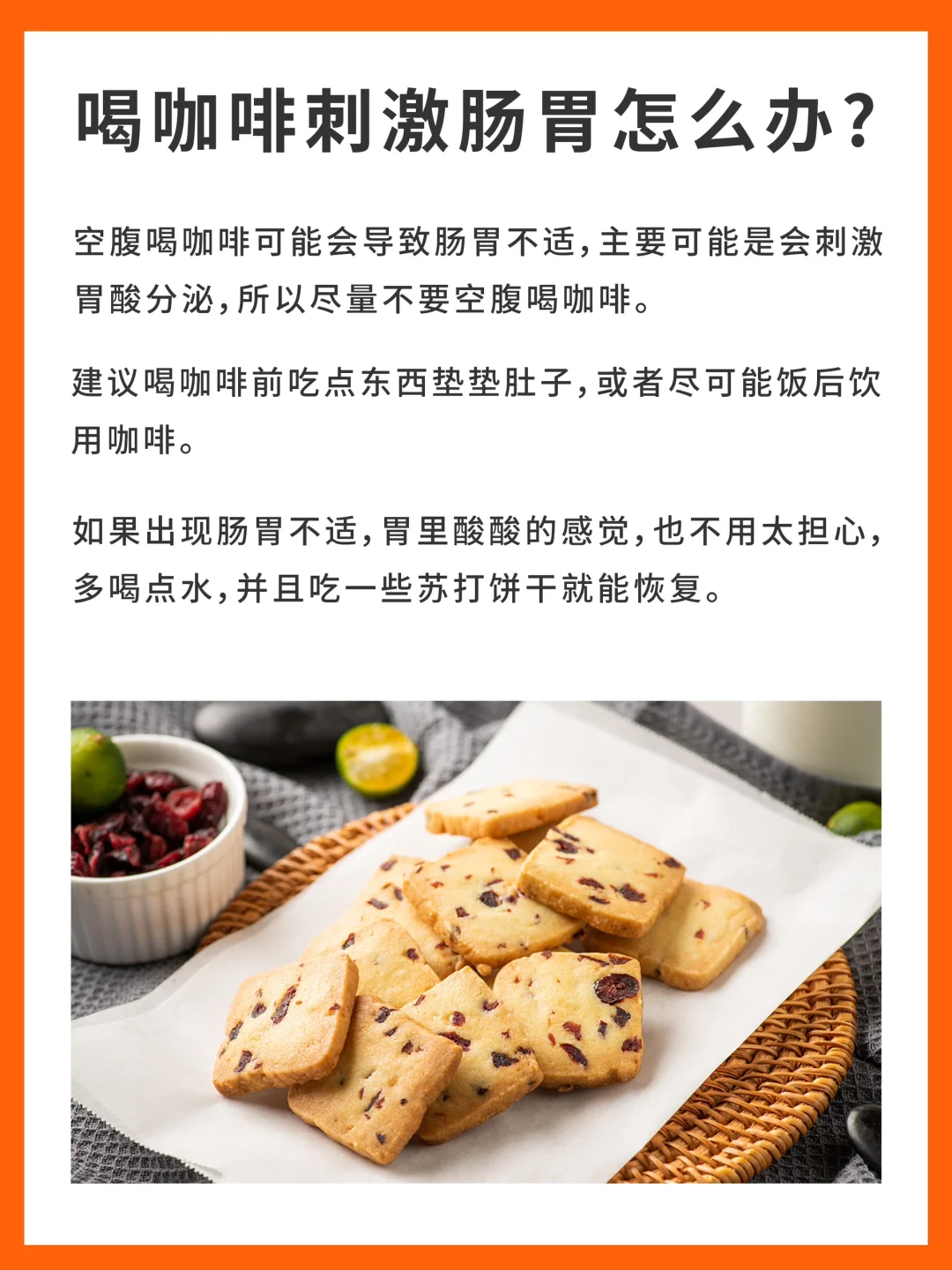 空腹喝咖啡确实可能会导致肠胃不适(主要可能是会刺激胃酸分泌),如果出现肠胃不适,也不用太担心,多喝点水,并且吃一些苏打饼干就能恢复。