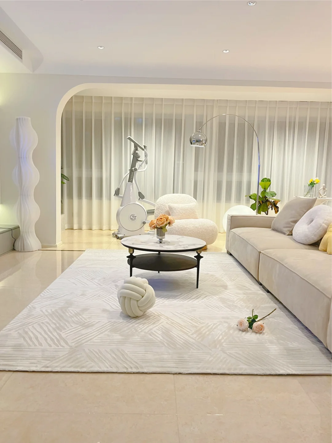 ✔️地毯选择了米黄色羊毛质感的,和地砖颜色统一,质感和颜值都很满意。