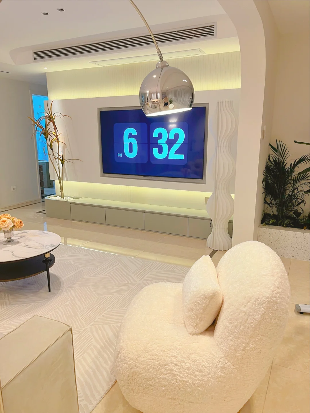 ✔️不做复杂背景墙,白色木饰面上墙,配上灯带氛围感妥妥