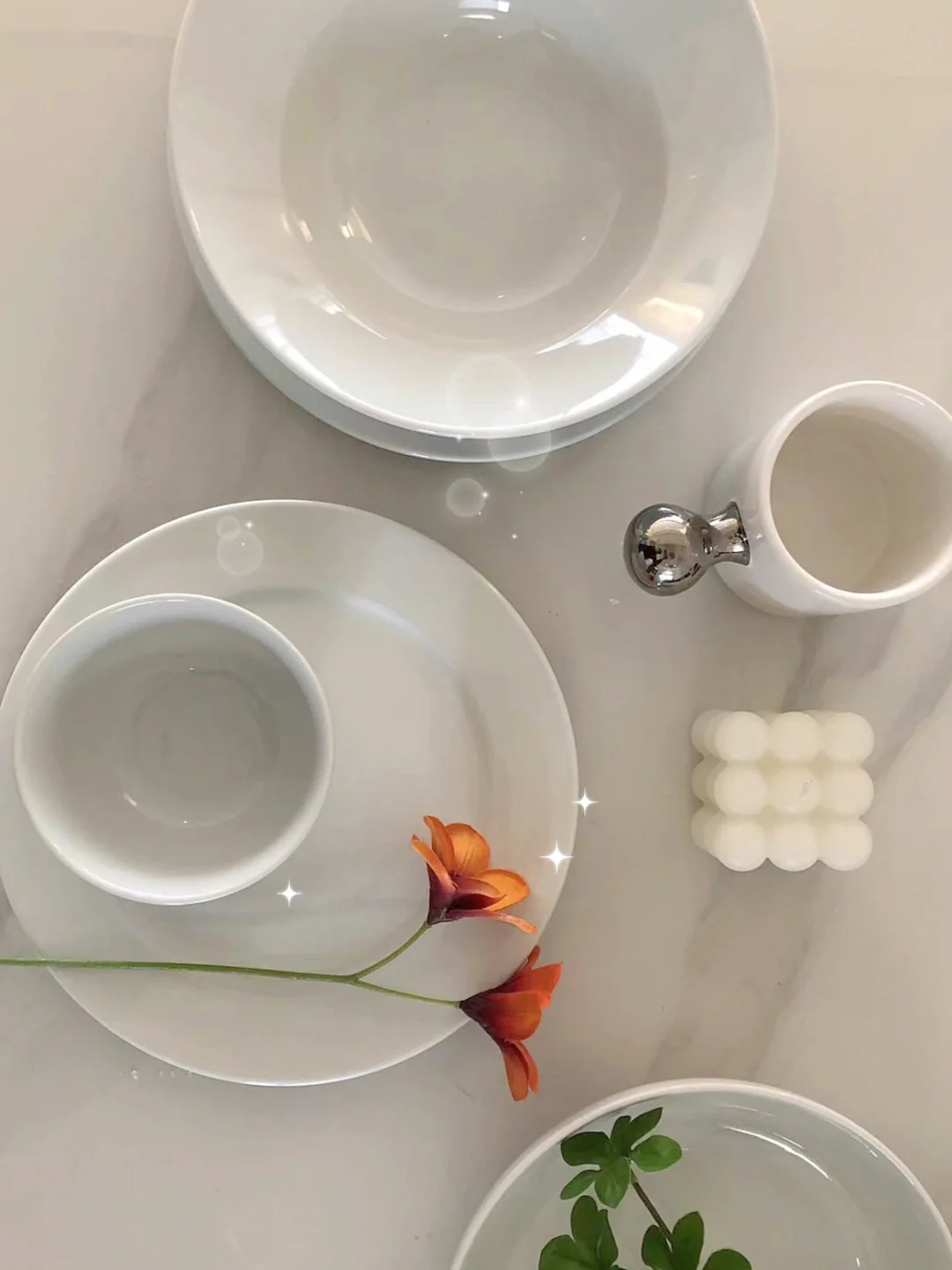 ✔️餐盘的挑选我也偏爱白色,纯粹又有质感的白色,让食物看起来干净、丰盛。
