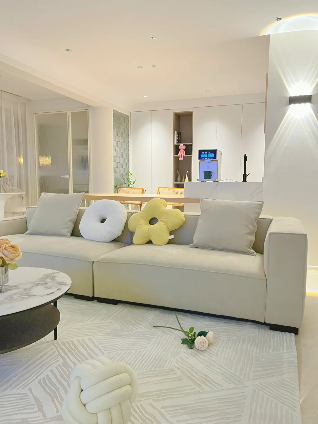 ✔️除了主沙发,还选择了一款可爱呆萌的单人位小沙发,不管放在客厅还是阳台都很合适。
