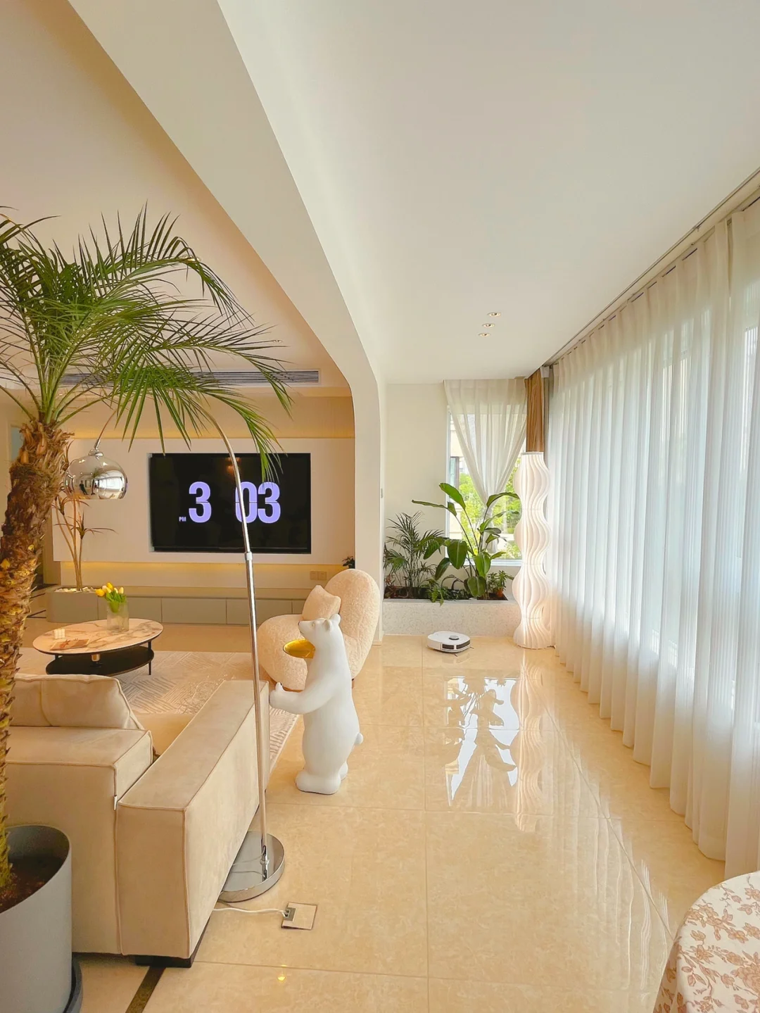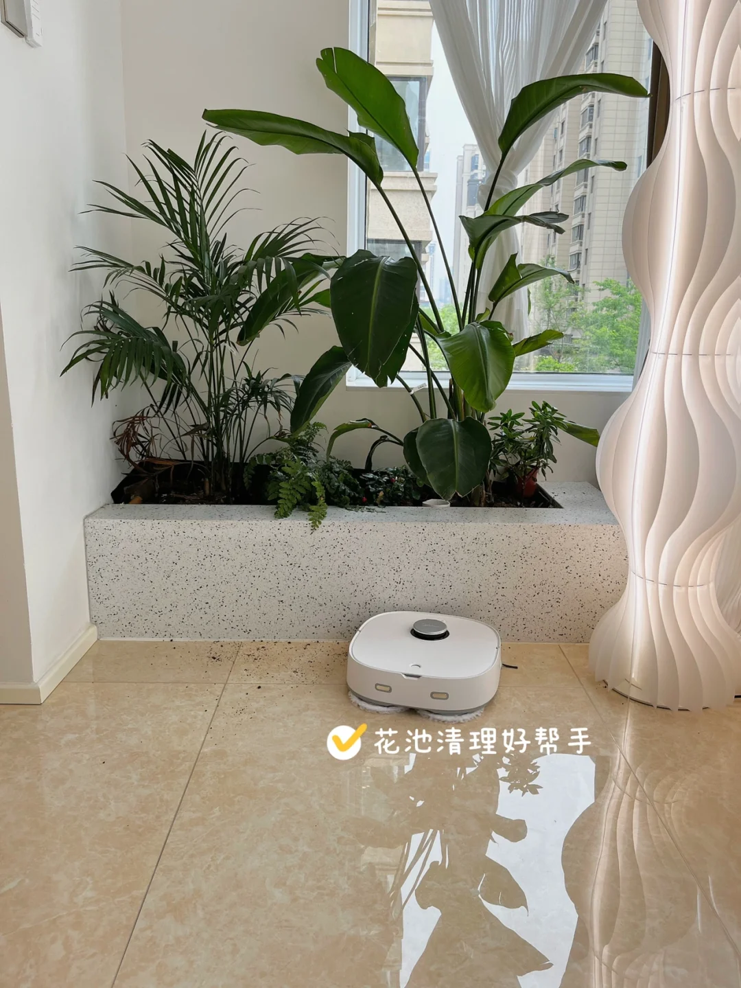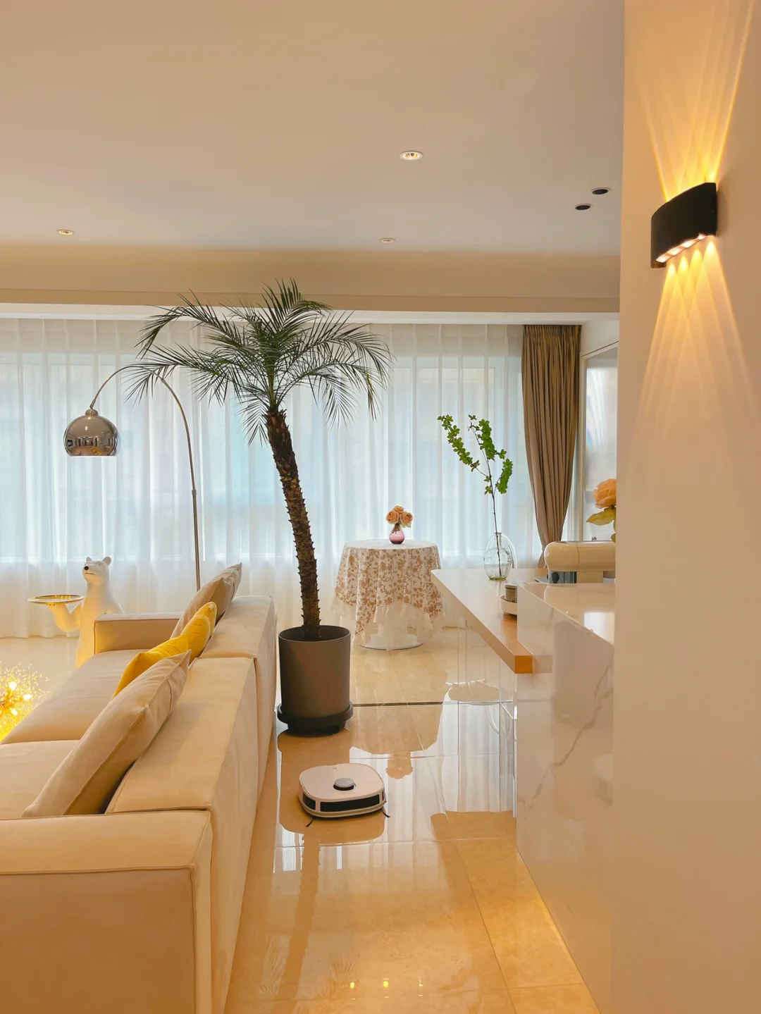 🔶浅色系的家,其实也很好清洁,我家用的是美的智能扫拖机器人W11,看中的是它先扫后拖的功能,也更贴合我们平时打扫的习惯,我家客厅面积挺大,机器人自带水箱,还会自动补水 ,早上出门后它就自己在家打扫啦,还可以通过app看它有没有好好干活。