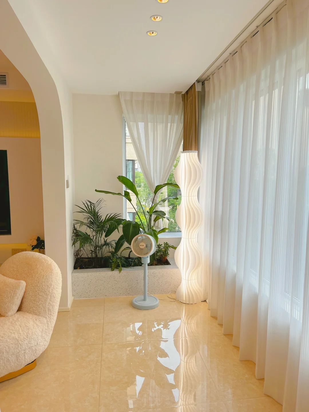 🍃客厅只有一台风管机,夏天会显得稍许吃力,看到上说循环扇可以均衡室温,就买了台气循环扇,我选了淡蓝色,和我家比较搭配,风力柔和却可以让整个空间的空气都活起来。