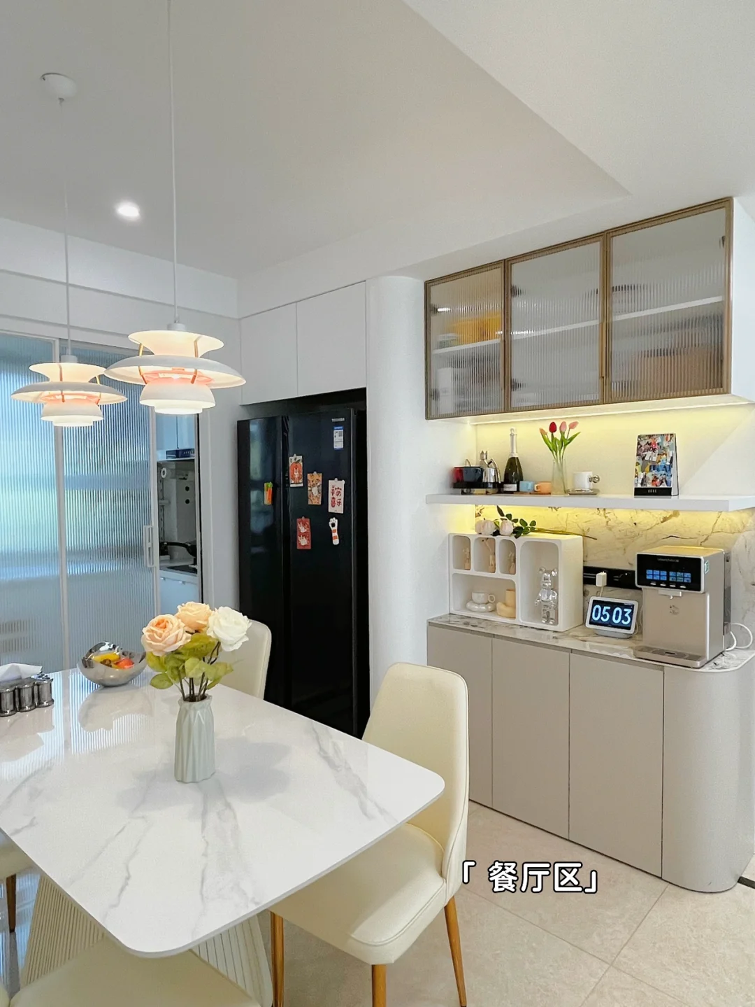 正如前面说的,圆润的东西总能透出温柔,仔细看会发现我家用了很多圆弧,从吊顶到玄关立面,从洗衣房隔墙到阳台门洞,圆弧也让这个家变得温馨。
