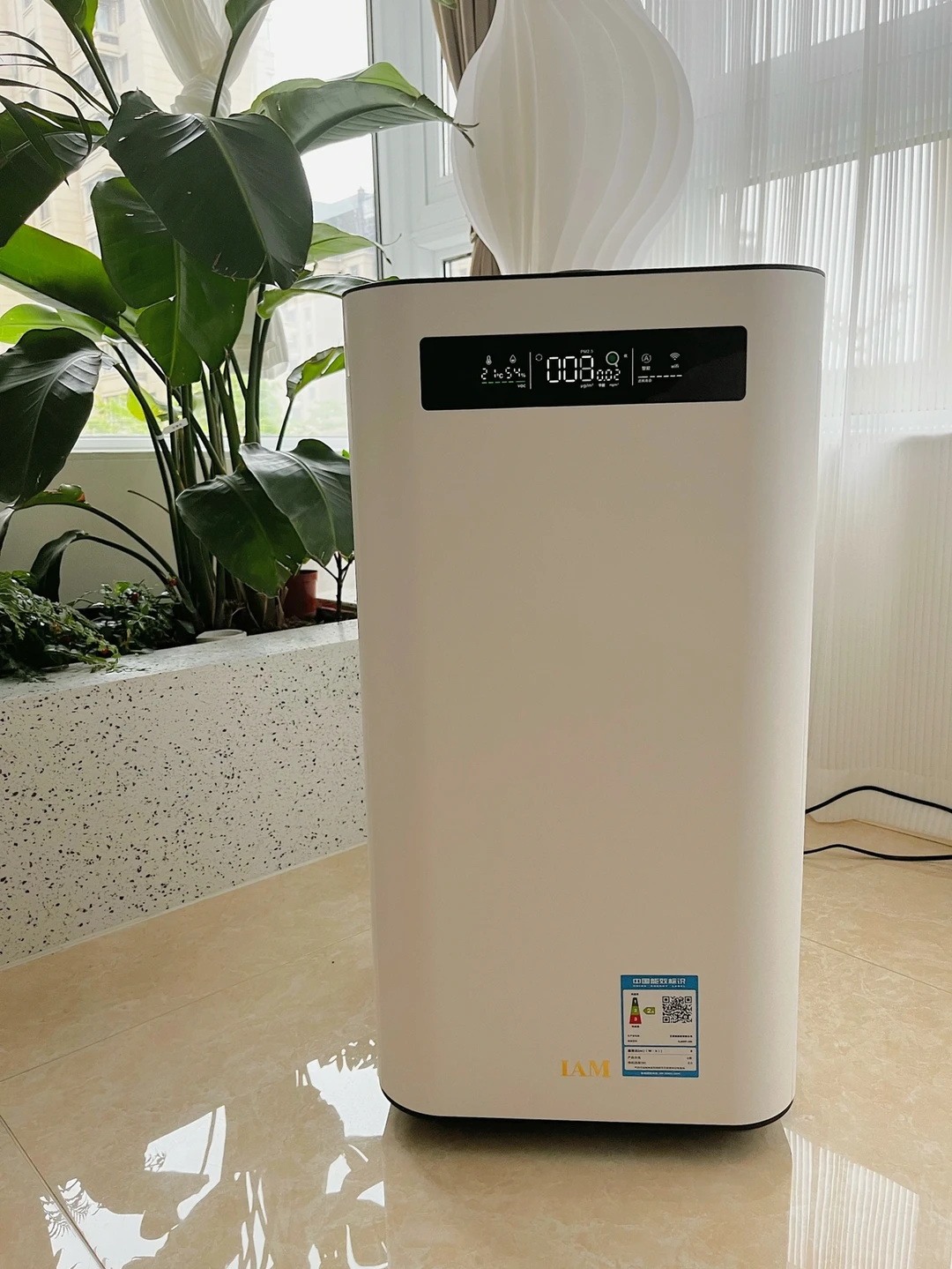 🌟因为客厅面积很大,所以选择了一款净化能力强的,这款IAM空气净化器M8说是可以适用于96个平方左右,我家120平,十几分钟就净化完了。
