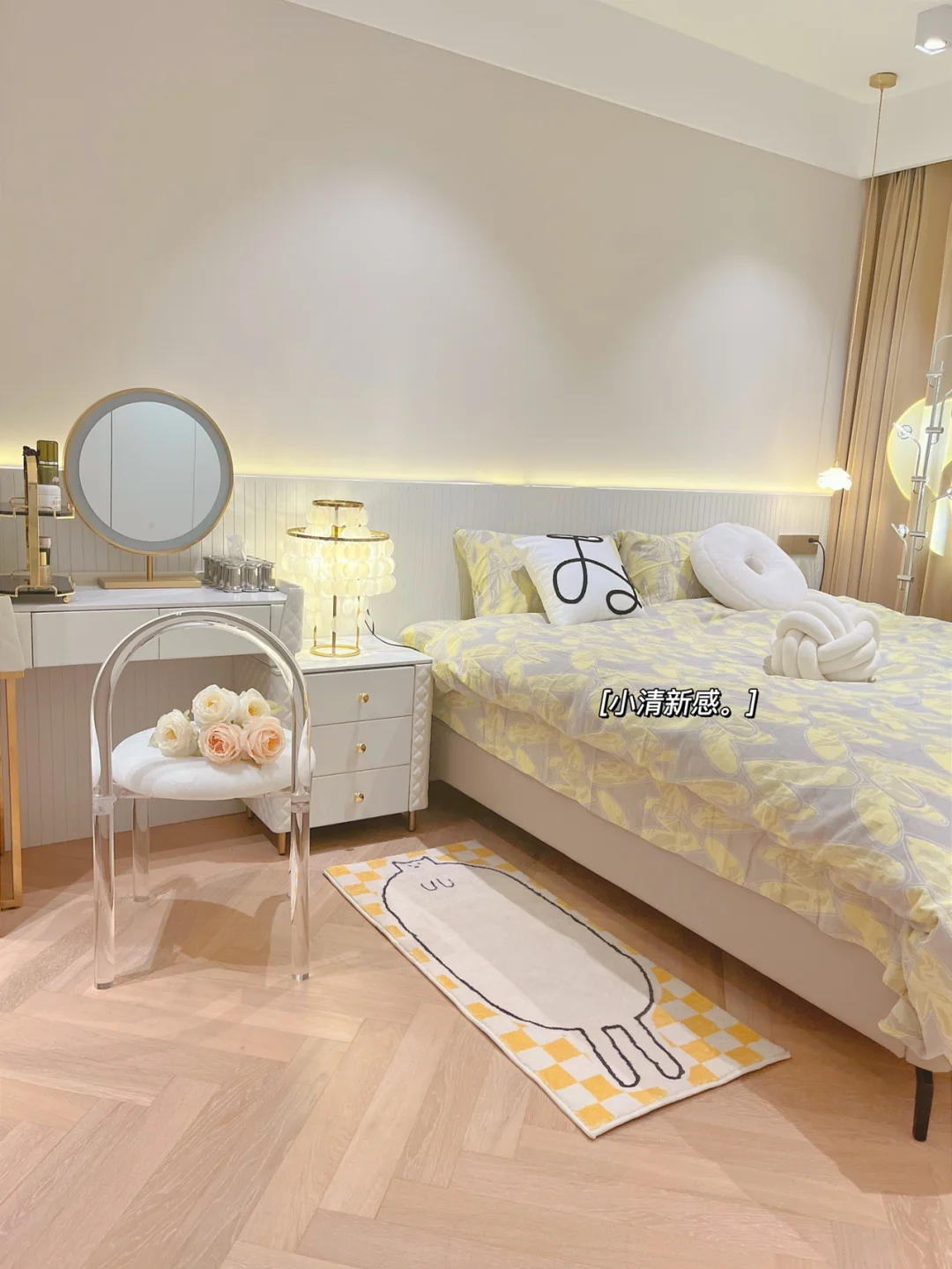 最近天气暖和了,换上了一套小清新的四件套,棉麻材质,透气又吸汗