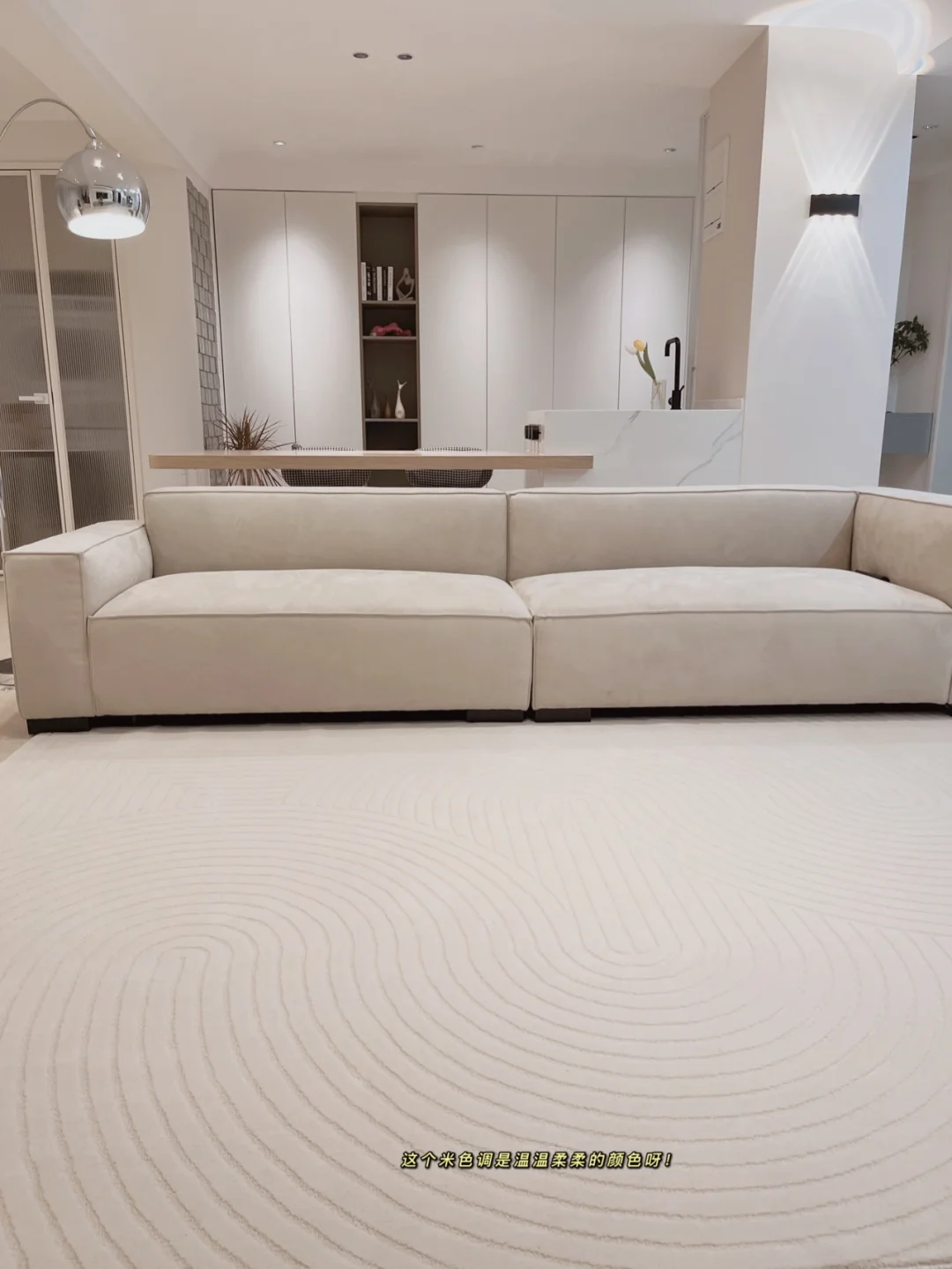 🔸客厅是一块和沙发同色系的地毯,清爽干净!