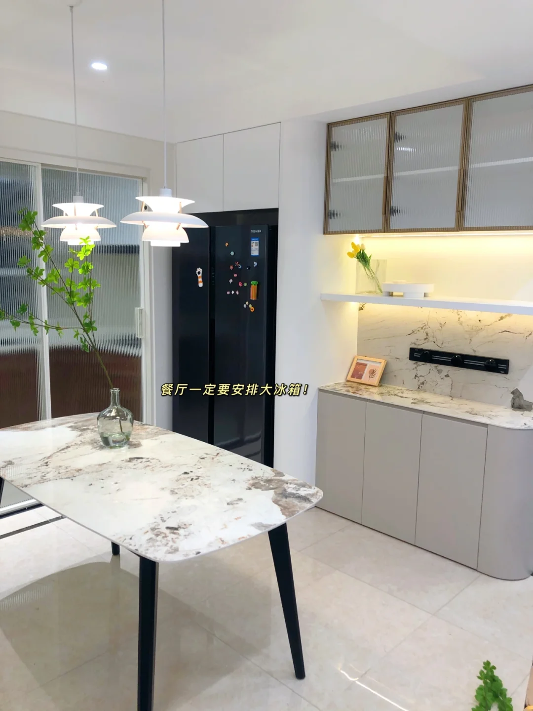 ▪️厨房面积不够,又想拥有大冰箱,所以把冰箱放在了餐厅区域。