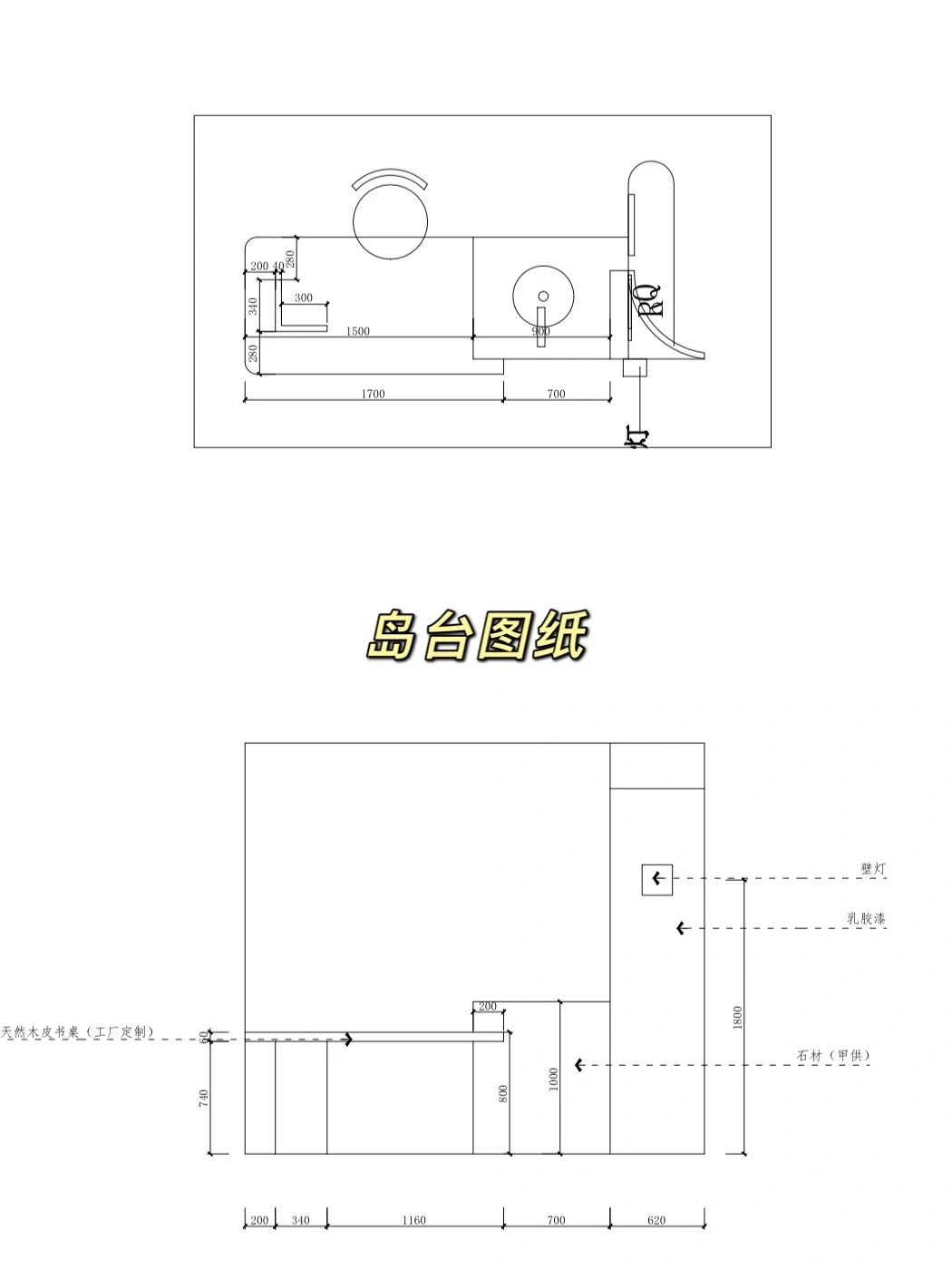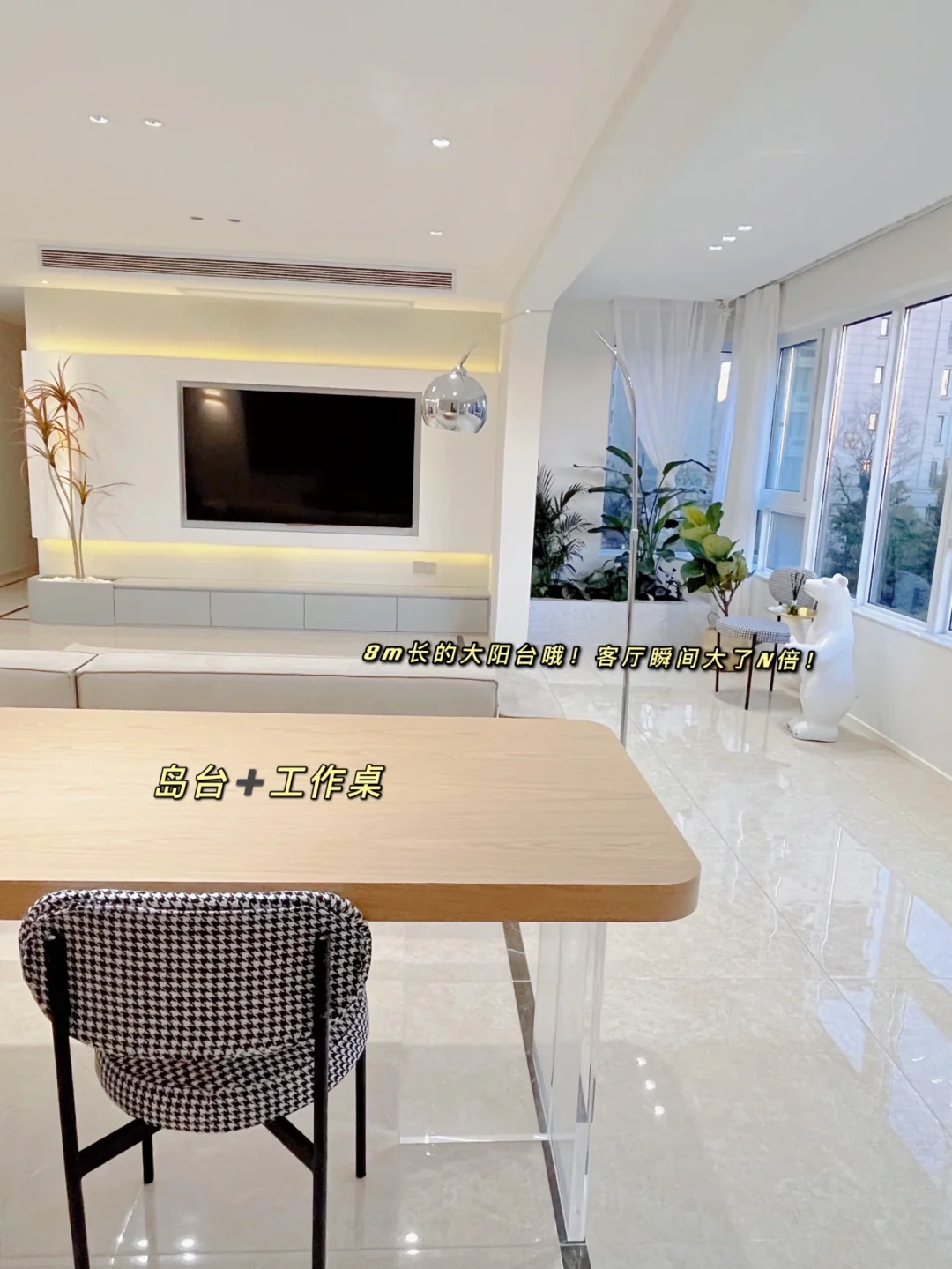 ▪️客厅安排了一个岛台+工作桌,办公或者聚会时当餐桌都很棒!具体图纸见图7⃣️!