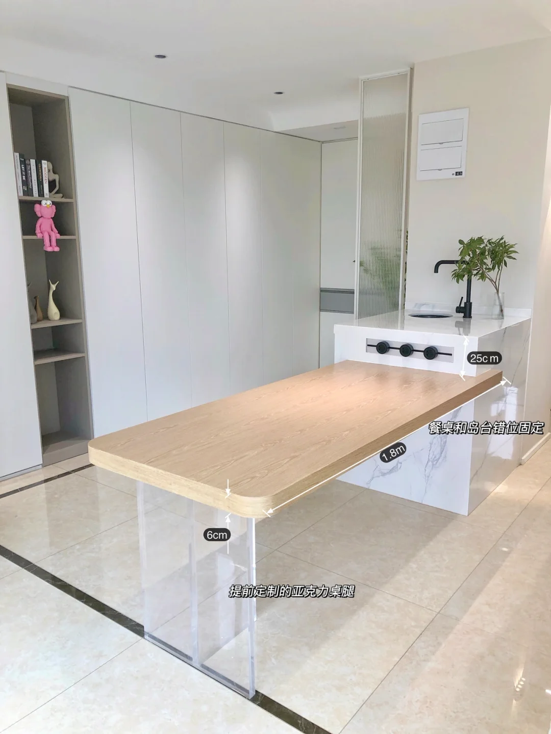 右侧:定制了亚克力桌腿,上部螺栓固定在餐桌上