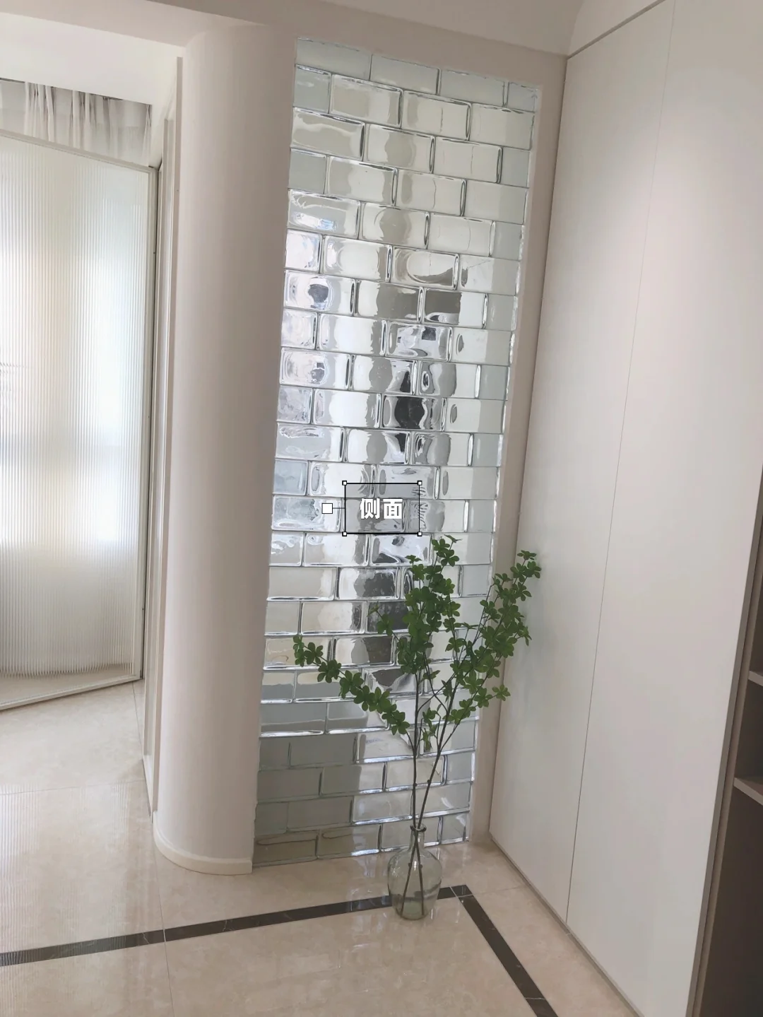 油工做完腻子上完油漆后,安排玻璃门厂家现场量尺寸下单,玻璃砖根据门洞大小计算好所需要的块数,玻璃砖我家是自己砌的哦!🔸
