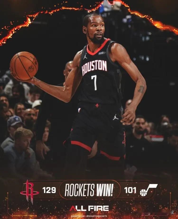 火箭官方终于看得起杜兰特了!在今天火箭客场以129:101大胜爵士的比赛中,杜兰特轻松砍下25分6篮板4助攻3抢断,是球队获胜的大功臣。值得注意的是,在比赛结束以后,火箭官方在社媒上晒出了一张赢球海报,而此役表现出色的杜兰特毫无争议的登上了球队的赢球海报。 在我的印象里,这应该是杜兰特在本赛季首次单独成为球队赢球海报的封面人物,杜兰特确实是实至名归。
