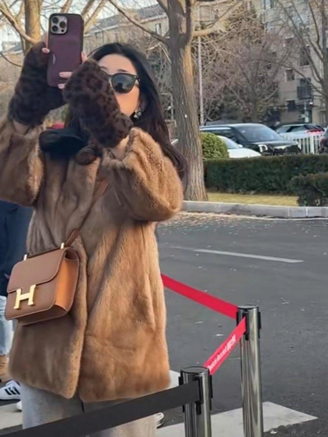 朱珠太飒了!貂皮加身,推开老公直奔镜头最佳位置,面无表情却美翻全场,这状态太绝了~朱珠 面无表情把老公挤开
