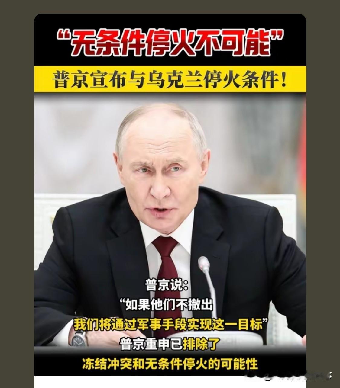普京对乌克兰停火开出明确条件:要求乌军完全撤出顿涅茨克、卢甘斯克、赫尔松和扎波罗热地区,否则军事行动将继续。这表明俄方凭借当前战场优势,坚持以“以打促谈”的强硬姿态,为后续外交谈判定调。你认为乌克兰会接受这一条件,还是冲突将进一步升级? 普京这是要继续打下去,但乌克兰也不不会那么乖乖就擒,他们的一切反击和袭击都将合法。