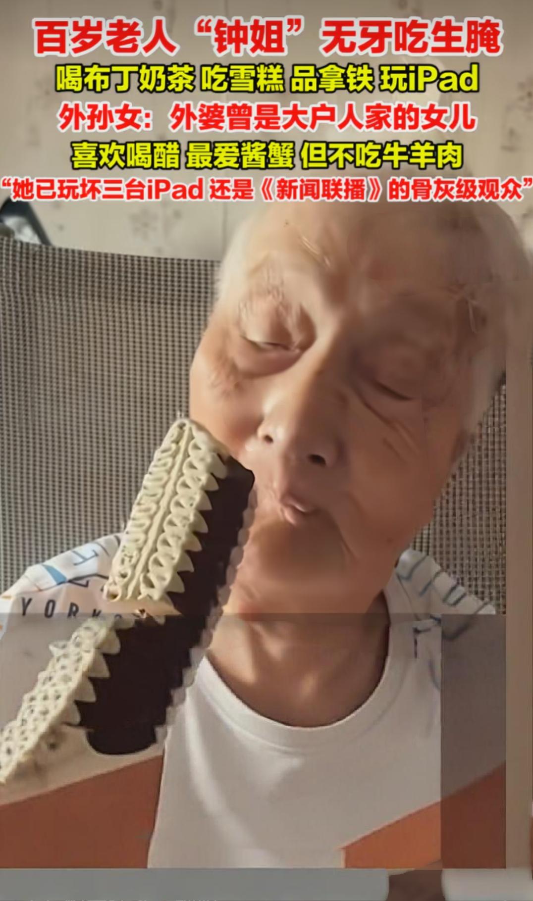 “百岁”吃播“钟姐”走红网络。11月 30日,“钟姐”外孙女告诉记者,外 婆“钟姐”曾是大户人家的女儿,读 过书也识字,她最爱酱蟹、上海传 统三黄鸡、红烧大鱼头。目前,已 玩坏三台iPad。 然而,令人唏嘘的是,这位曾经的“大家闺秀”如今却成了网络上的“吃播网红”。她的故事,似乎折射出当下社会的某种奇怪现象:我们在追逐所谓的“流量”时,是否也在逐渐失去一些珍贵的东西?钟姐的生活,曾经是大户人家的女儿,有书有文化,有尊严,可如今,她用“吃播”吸引粉丝,成为网络的焦点。这背后,是不是我们对“尊重”的逐渐淡漠?还是对“幸福”的定义在悄然改变? 有人说,钟姐的走红是时代的缩影。每个人都渴望被关注、被认可,甚至用自己的一技之长去换取一份存在感。可是,为什么是“吃播”?为什么是用“吃”来吸引眼球?难道我们真的只剩下“看着别人吃”的娱乐方式?更令人心碎的是,她的生活被放大成“网红”标签,成为一种娱乐消费的符号,而那份曾经的优雅、尊严,却在网络的洪流中逐渐模糊。 其实,钟姐的故事让我们看到了一种人性的复杂:她的过去、她的文化、她的生活,都是一份宝贵的财富。而今,她用“吃”续写人生,也许是无奈,也许是对过去的缅怀。她的身影提醒我们:在这个快速变迁的时代,传统文化的价值、尊严与自我认知,正面临着前所未有的挑战。我们是否应该反思:我们追逐的“流量”是否值得?我们是否还能坚守那份初心和尊重? 更深层次的思考是,社会对“老人”、“传统文化”的态度正在发生变化。钟姐的“走红”或许是个极端的例子,但也折射出许多被边缘化的声音。我们是否愿意在追求新鲜感和娱乐的同时,给予那些曾经辉煌、如今被遗忘的人们一些尊重和关怀?还是只在他们成为“热点”时,短暂地关注一下,便匆匆离去? 或许,真正的“爆款”不是一时的流量,而是能引发我们深思的内容。钟姐的故事,让我们看到了人性中那份渴望被理解、被尊重的心。它提醒我们:在追逐娱乐和流量的同时,不要忘记那些曾经的光辉和他们的尊严。毕竟,每一个“百岁老人”背后,都是一段值得我们用心去倾听的历史。钟姐美食 钟姐奶奶