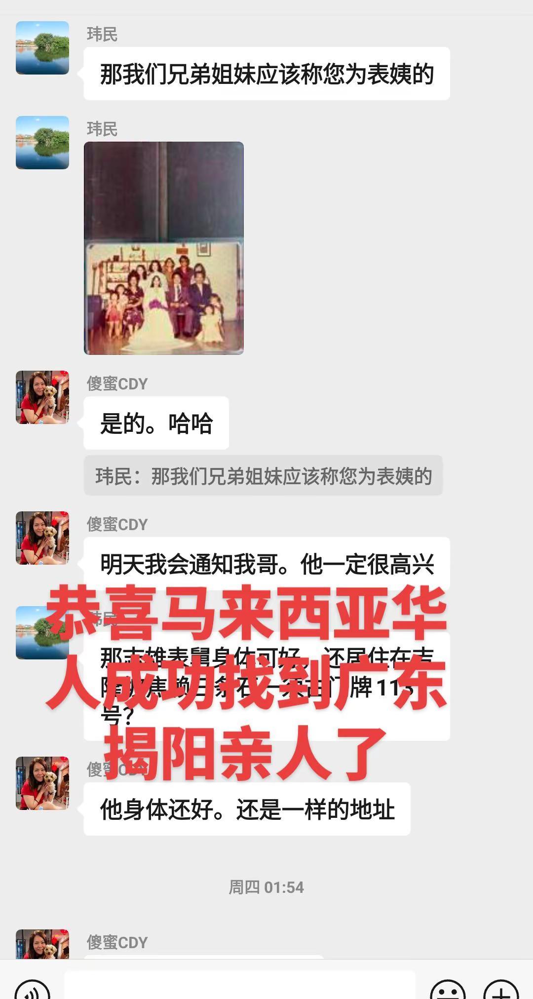 恭喜马来西亚华人成功找到广东揭阳亲人了寻亲