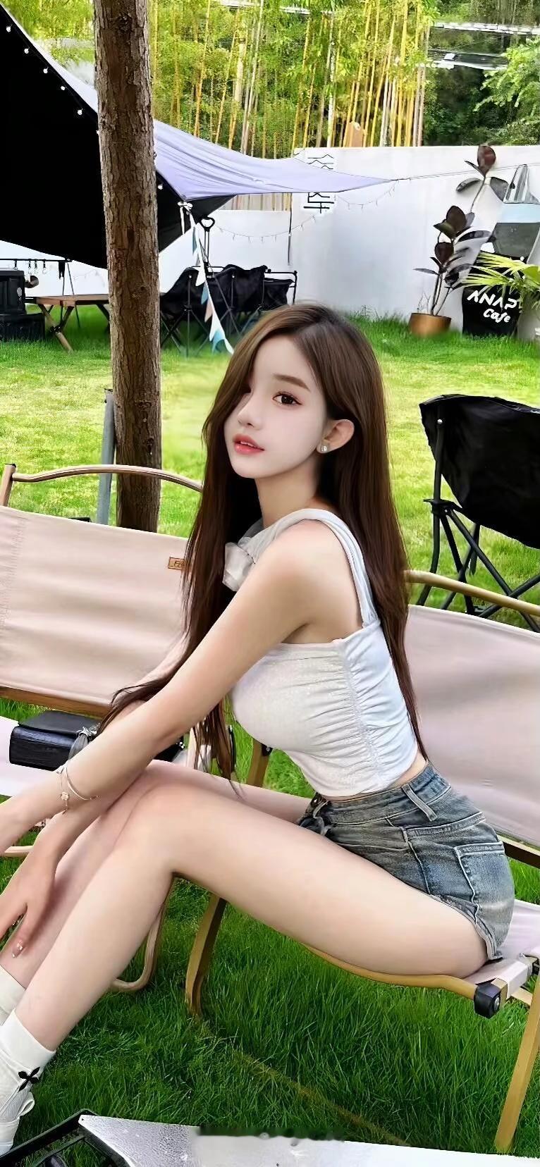 夏日清新穿搭,绿意盎然背景下的时尚穿搭